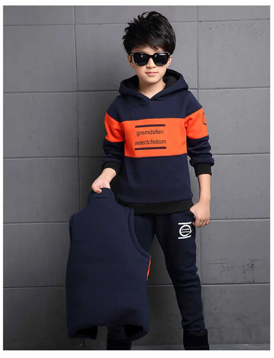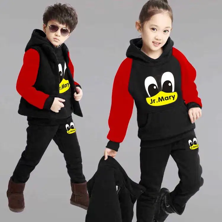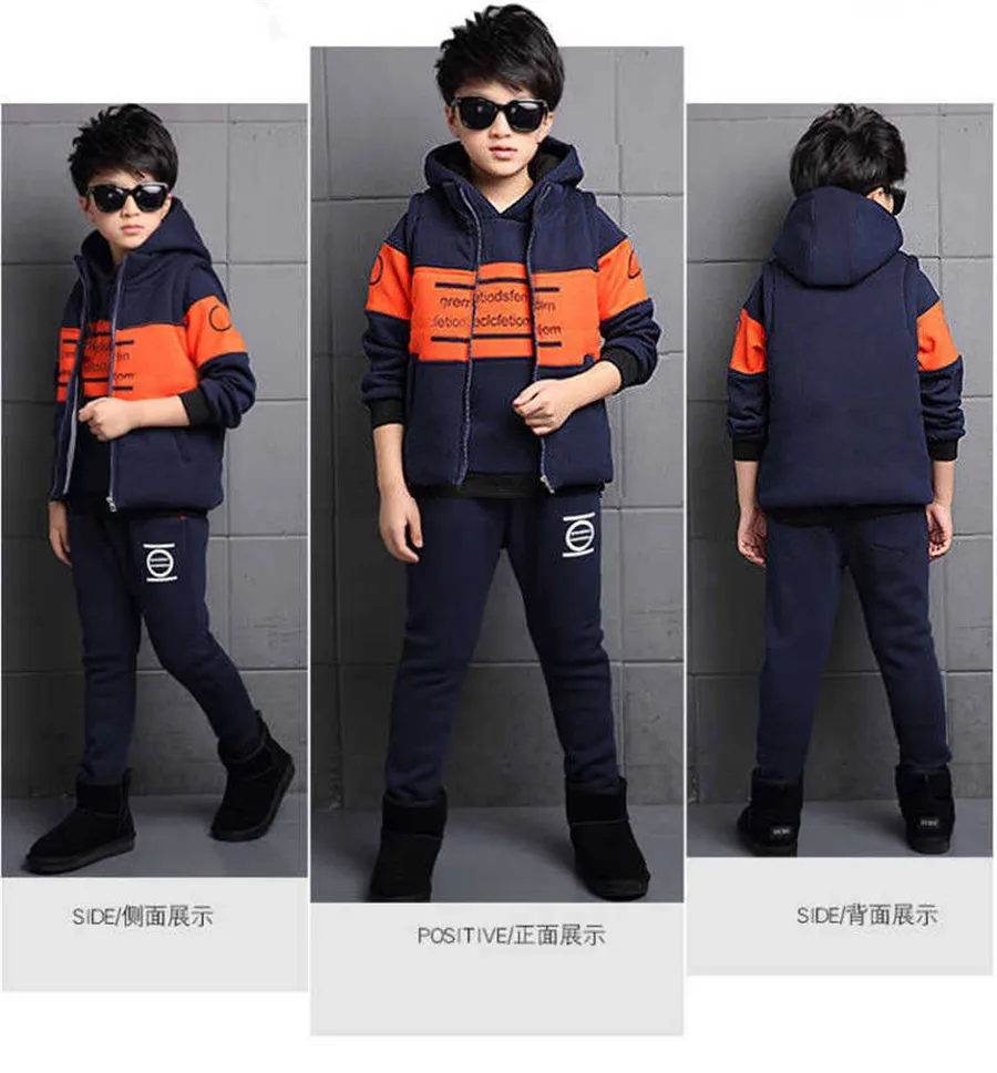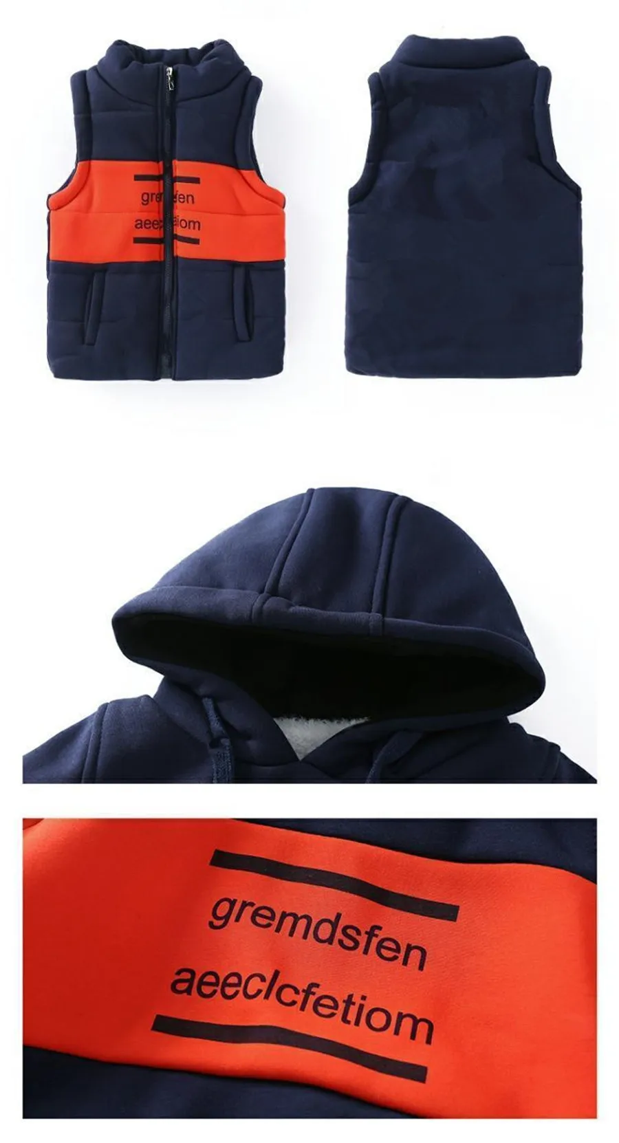 Спортивный костюм для мальчиков 3 шт.компл. Детский Костюм хлопковый жилет с капюшоном + футболка + штаны для девочек детская спортивная одежда спортивный костюм теплая одежда