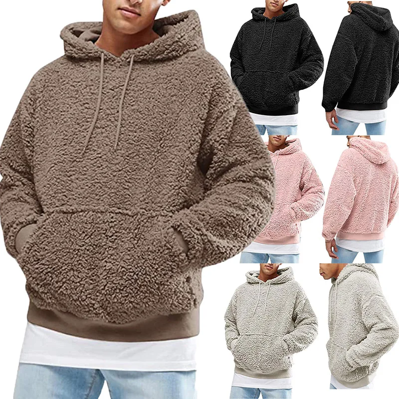 Зимние мужские толстовки, теплая толстовка из искусственного меха, ...