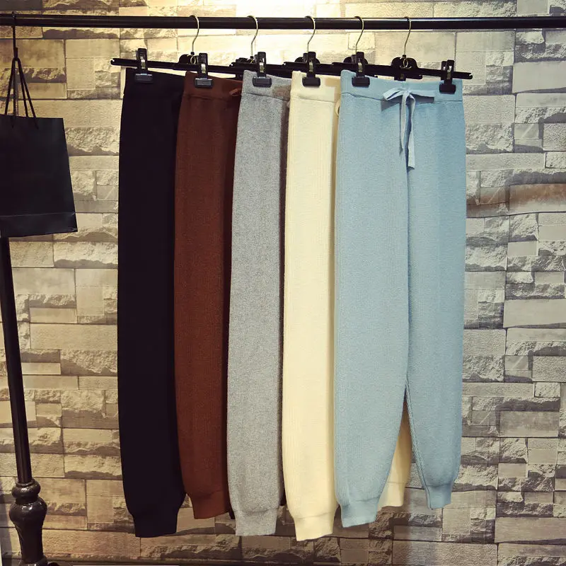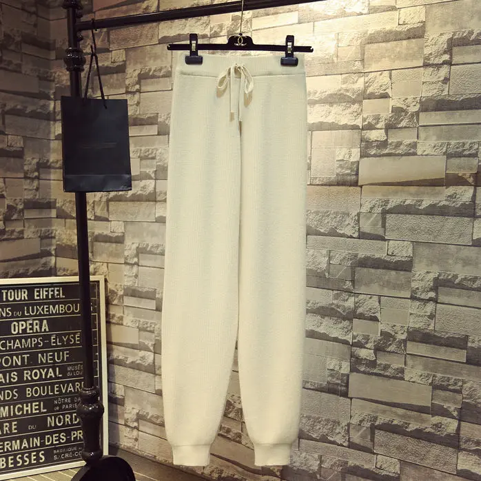 Осенне-зимние модные темпераментные Новые плотные вязаные шаровары, женские свободные повседневные свитеры, однотонные брюки с завязкой