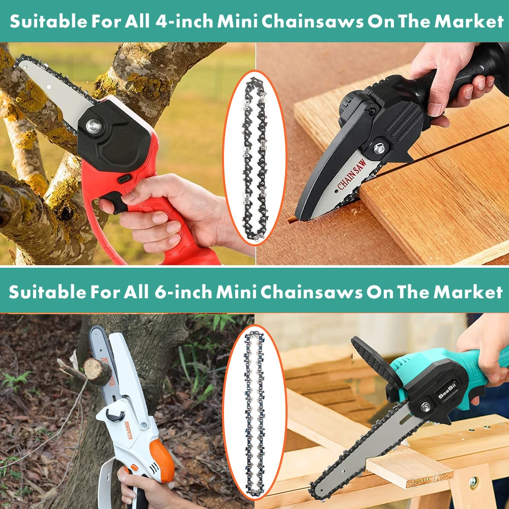 Для 4/6 дюймов Электрическая цепная пила цепная электропила со Запчасти, 4/6 дюймов направляющая цепной пилы пластина4-дюймовый цепи, 1/4, 28 секций6 дюймов цепи, 1/4, 36 секцийОсобенности:Изготовлен из качественного материала, вы можете использовать его безопасно.Одна и та же пила может быть оснащена разной длиной стержня. Проверьте свои параметры, чтобы убедиться, что эта цепь работает с вашей машиной.Термообработанные и закаленные заклепки делают более прочное соединение между цепными звеньями.Весь инструмент для обрезки цепей имеет лучшую износостойкость.Изготовлен из высококачественной стали с превосходной технологией.Характеристики:Материал: сталь