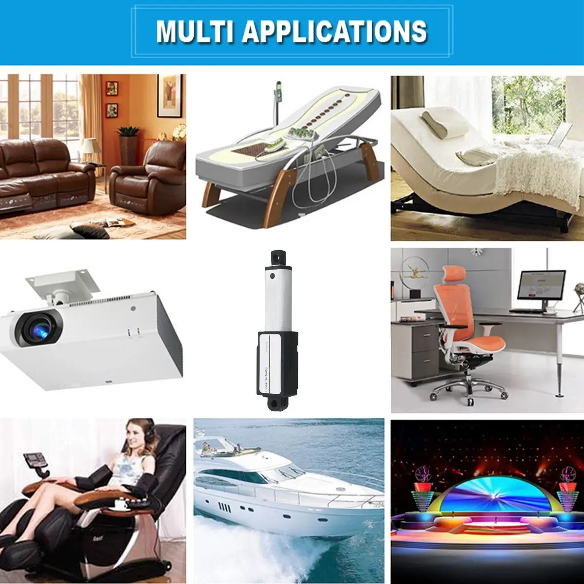 Технические параметры:Нажимная планка с каждой стороны содержит ограничительный переключатель перемещения. Когда телескопическая планка бежит к верхней или верхней части, она автоматически отключит электричество.Двигатель не пропустит. Отключите питание, его можно остановить в любом положении, с функцией самоблокировки.Толкатель управляется двигателем постоянного тока с винтовым приводом. Телескопический стержень может быть вытянут только без вращения.Мотор положительный и отрицательный. Например, если положительный электрод растягивается и отрицательный электрод уменьшается, телескопическое направление стержня может быть изменено путем его изменения.Температура окружающей среды-10 °C до + 50 °C.Стандартный Класс защиты: IP54.Низкий уровень шума, уровень шума менее 50 дБ.Пожалуйста, не разбирайте устройство.Характеристики продукта: Управляйте другими объектами, чтобы нажимать, тянуть, поднимать, опускать.Применение продукта: ТВ Подъемные столы, массажные кровати, электрические кровати, медицинские кресла, электрическое оборудование, микро-устройства, электрические диваны, рамки камеры, камеры и многое другое.