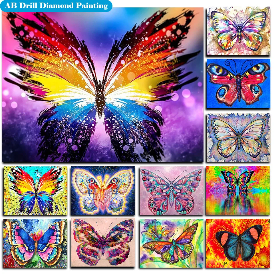 Алмазная живопись AB, набор животных 5D, алмазная вышивка сделай сам, Бабочка, вышивка крестиком, картины Стразы, полная мозаика, настенное искусство