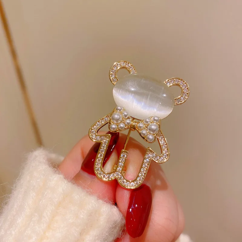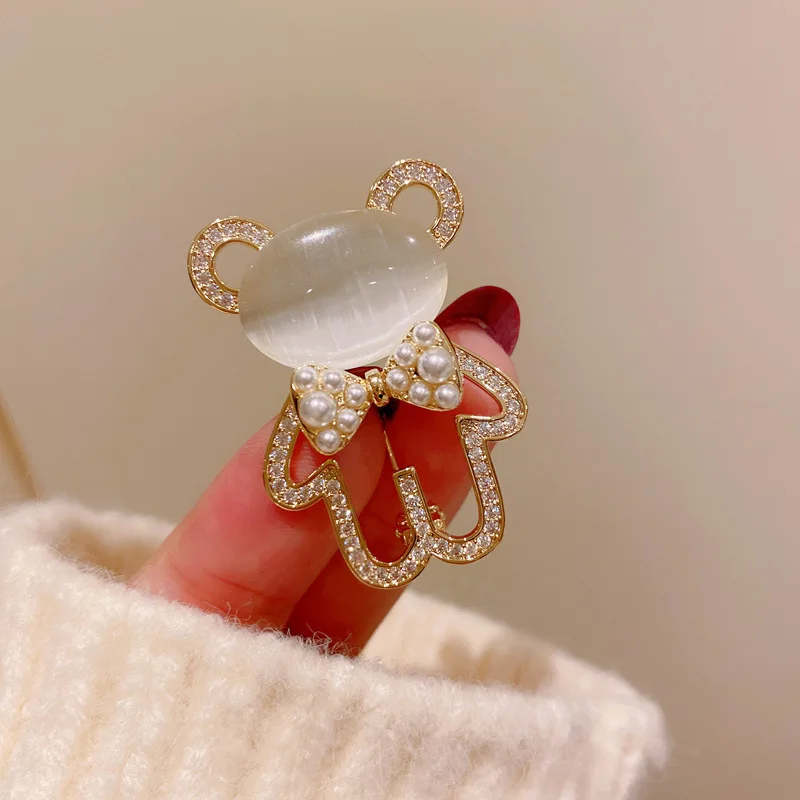 Женская Брошь в виде медведя из опала, позолоченная брошь в Корейском стиле, аксессуар для пальто, 2021