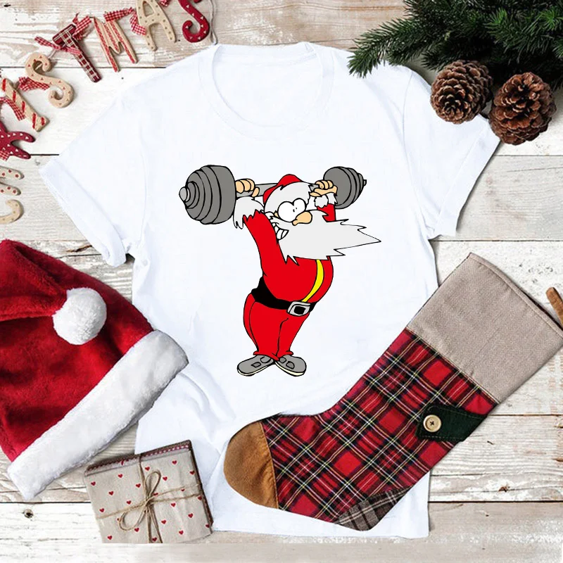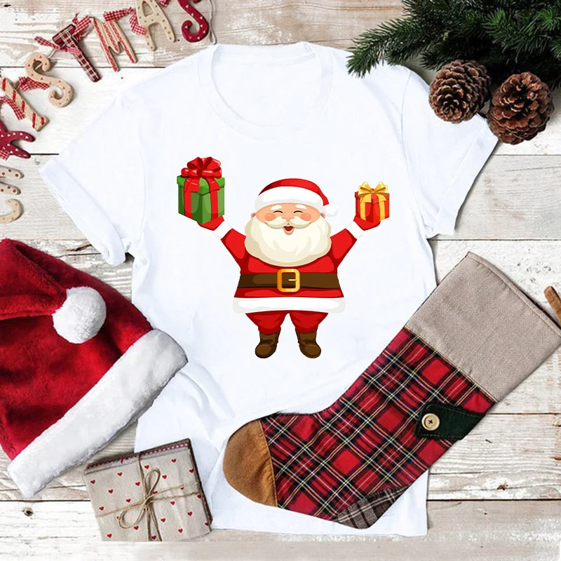 Футболка женская с мультяшным принтом, смешной подарок Санта Клауса и лося, милая одежда на Рождество