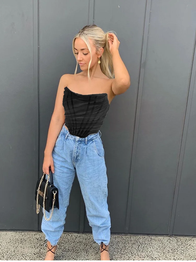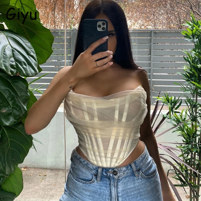 Женский сетчатый корсет NewAsia, Топ без бретелек, бюстье, прозрачн...