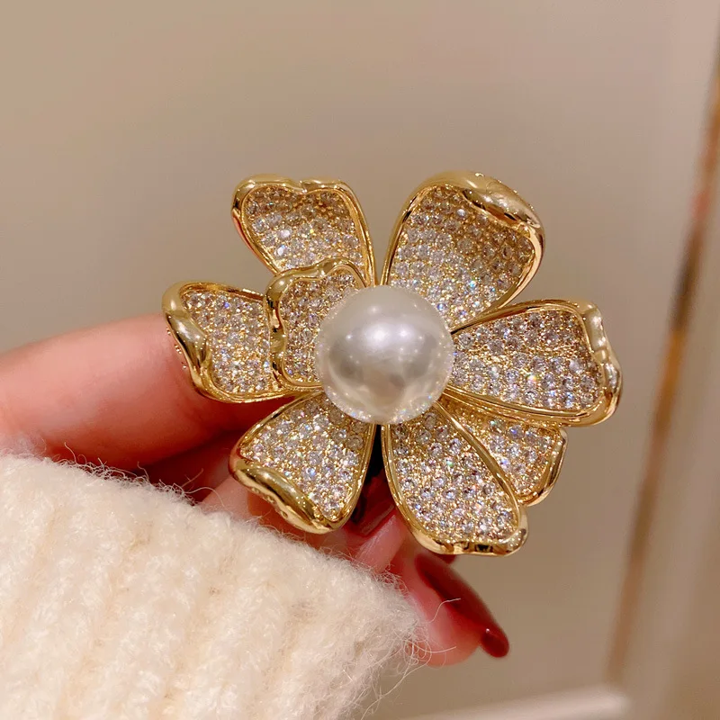 Женская Брошь с искусственным жемчугом, большая брошь с фианитом
