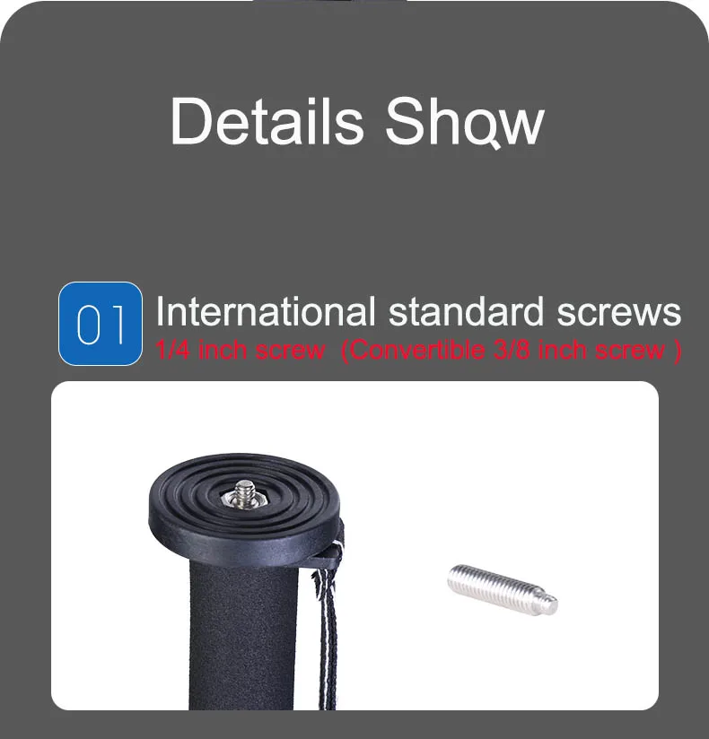 Описание продукта:Описание:Этот монопод Manbily A222 /A333 изготовлен из алюминиевого сплава и может быть расширен до 5 секций. Он оснащен платформой подшипника для установки любых типов камер или 1/4 "/ 3/8" платформ. При фиксации монопода на основании 3 футов, монопод может достигать наклона 20 градусов и вращения на 360 градусов.Особенности:МоноподИзготовлен из алюминиевого сплава обеспечивает отличную стабильность и нагрузку.Рукоятка покрыта слоем губки, не скользит.Оборудованный ручной ремень также позволяет использовать его в качестве альпенштока.Система блокировки ручки делает ее противоскользящей и пыленепроницаемой, также стабильной.ОснованиеСовместим с 3/8 "unipod, экономит пространство и усилие.3 фута изготовлены из высококачественного противоскользящего коврика для автомобильных колес.Стабильный замок для ног обеспечивает большую безопасность.Монопод M1 также позволяет подключаться к платформой непосредственно, чтобы стать настольным штативом для съемки под низким углом.При ослаблении вертикального запорного винта nuipod может достичь наклона на 20 градусов и вращения на 360 градусов. При блокировке винта монопод возвращается в вертикальное состояние.Дно может быть отрегулировано шестигранным гаечным ключом.Шаровая ГоловкаИзготовлен из алюминиевого сплава, очень прочный и долговечный. A-222 Максимальная Грузоподъемность 5 кг, A-333 Максимальная грузоподъемность 10 кг.Характеристики:Модель: KF-0 шаровой головкойМатериал: алюминиевый сплавЦвет: черныйМаксимальная грузоподъемность: 5 кгСфера Диаметр: 3,6 см/1.4inШаровая Головка высота: 10,5 см/4.1inС пластиной быстрого крепления Размеры: 6*3,8 cm/2,4 * 1.5inВес изделия: 393 г/13,85 унцийПосылка Размеры: 9,5*9,5*10,5 см/3,7*3,7 * 4.1in(L * W * H)Вес посылка: 448 г/15,8 унцийМоноподМаксимальный диаметр трубки: прибл. 25 мм/1,0 ".Минимальная длина: прибл. 450 мм/18 ".Максимальная высота: прибл. 1650 мм/65 ".Максимальная нагрузка: прибл. 5 кг.Вес: прибл. 535 г.ОснованиеОбщая высота: прибл. 75 мм/3,0 ".Длина одной ноги: прибл. 110 мм/4,3 ".Вес: прибл. 290 г.Примечание: Есть пять различных продуктов: 1. Основание для штатива 2. Головный шар 3.mo nopod 4.mo nopod и подставка 5. Головной шар, монопод и подставка. Пожалуйста, выберите, какой товар вы бы хотели, если есть какие-либо вопросы, которые вы не понимаете, пожалуйста, свяжитесь со мной свободно. Спасибо.
