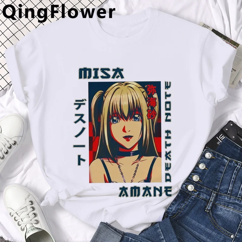 Футболки с рисунком аниме Death Note Misa Amane, топы для мужчин и женщин в стиле tumblr, для пар, в стиле Харадзюку, милые Графические футболки, женские белые