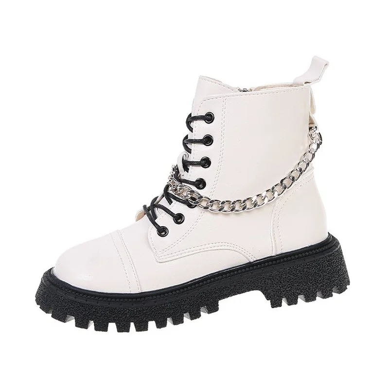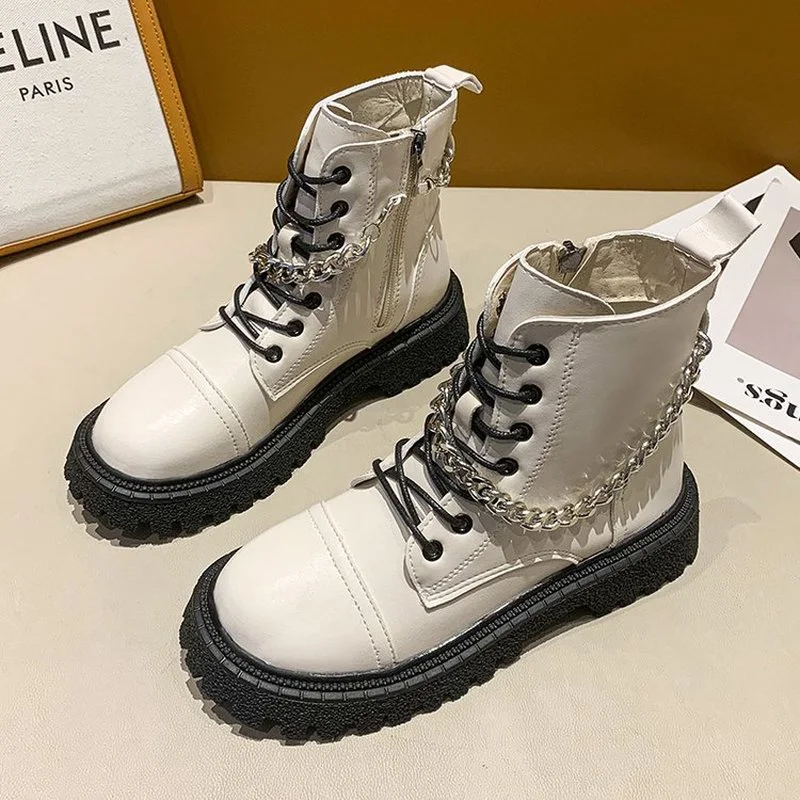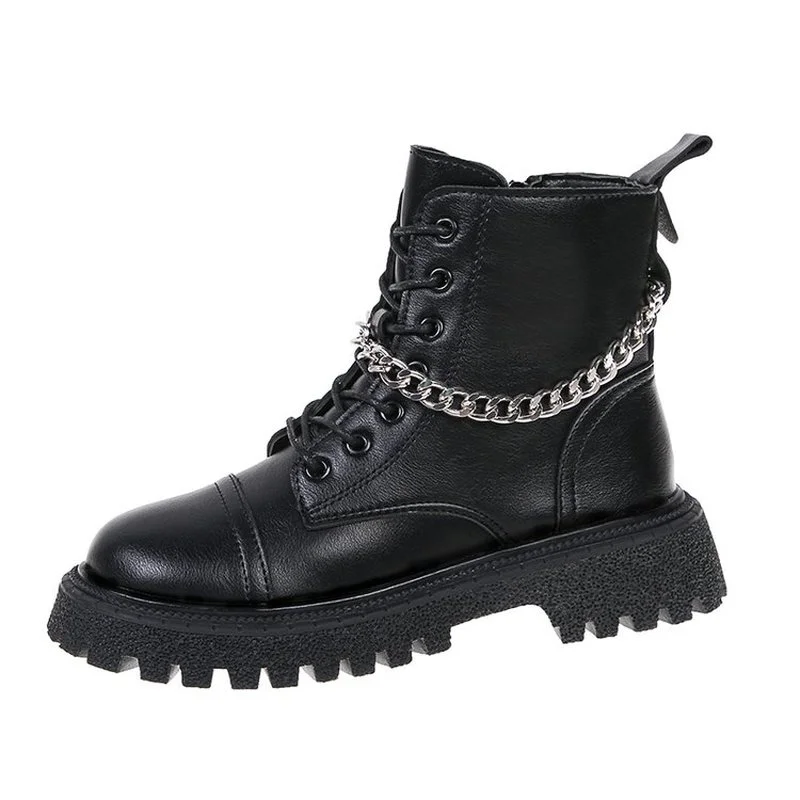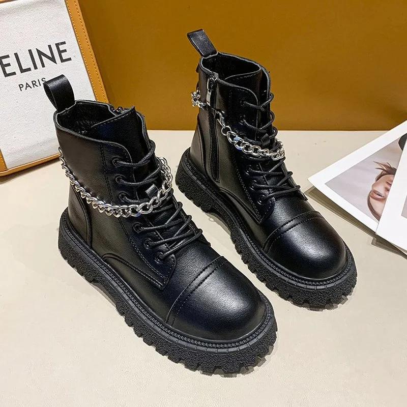 Европейские американские кожаные ботинки на молнии с цепочкой на толстой подошве в британском стиле черные мартинсы женские короткие ботинки в стиле панк мотоциклетные ботинки