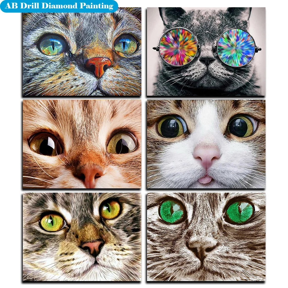 Алмазная вышивка AB с животными, вышивка крестиком 5D, сделай сам, полноразмерная алмазная живопись с кошками, мозаика стразы, картины, ремесла, украшение