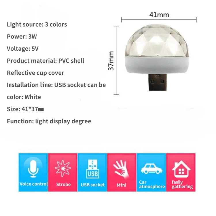 Автомобильная лампа с USB-разъемом, DJ RGB миниатюрный Красочный му...