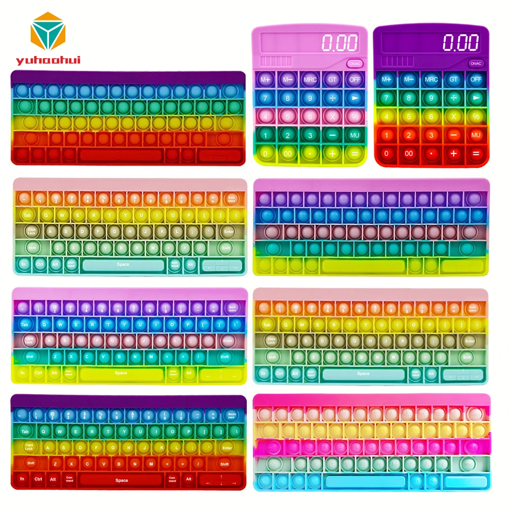 Радужная клавиатура, популярные игрушки-антистресс с пузырьками, многоцветная клавиатура, калькулятор со словами, игрушка для детей, настольные игрушки антистресс