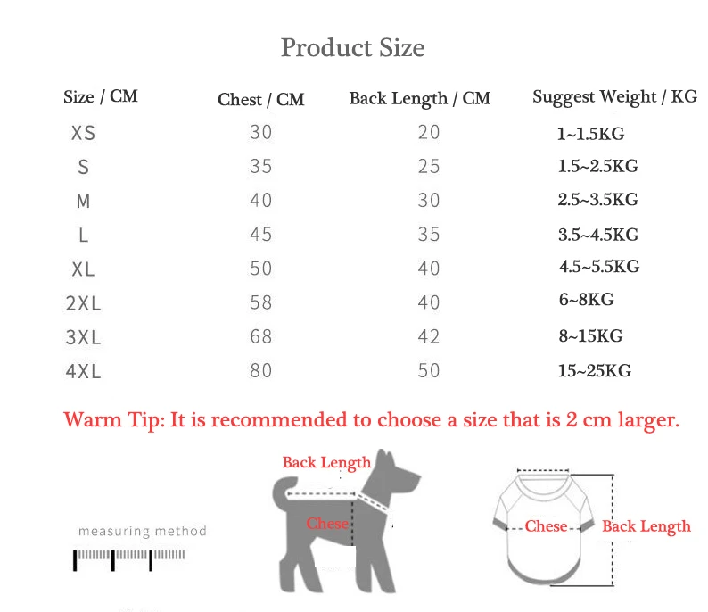 Пожалуйста, выберите размер в соответствии с весом вашей собаки.Теплый совет: рекомендуется выбрать размер на 2 см больше.