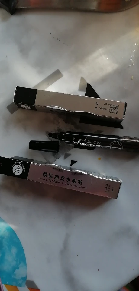 товар пришел целым , хорошо упакован , действительно водостойкий карандашь для бровей , создаёт эфект натуральных бровей , все оттенки понравились , как на фото , рекомендую к покупке