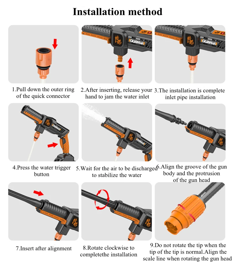 2основная машина, водяной пистолет и водопроводные трубы распределяются отдельно. При реальных продажах склад проводит второй осмотр и повторную сборку в соответствии с различными требованиями к посылка. Таким образом, упаковочная коробка машины покажет признаки распаковки, пожалуйста, поймите.