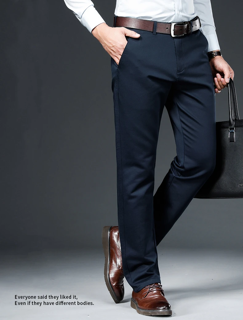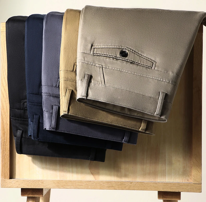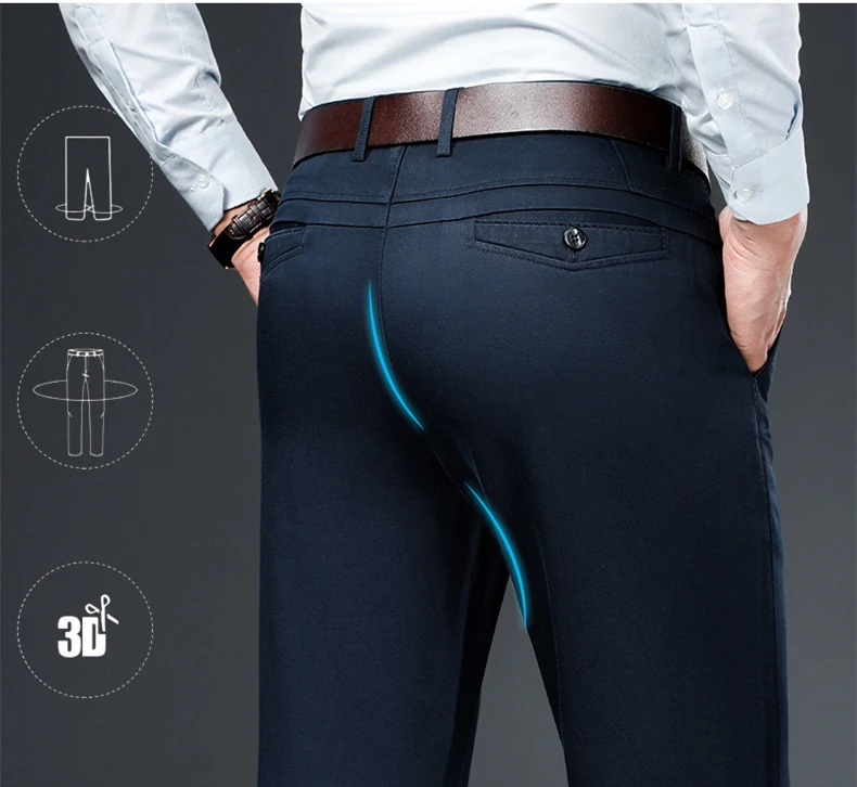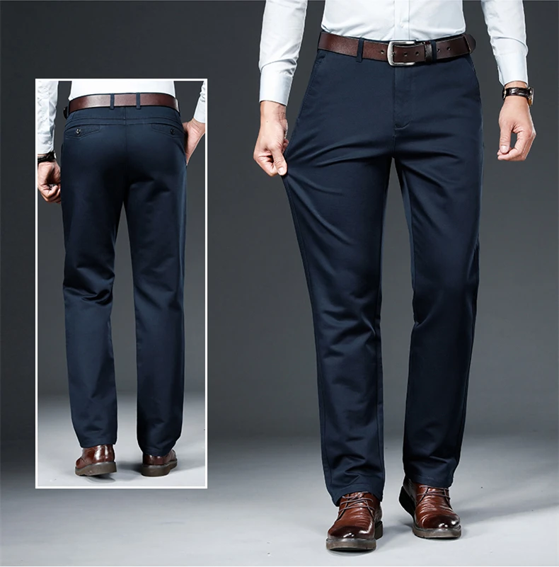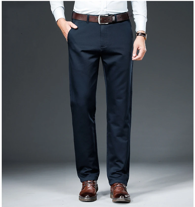 Брюки мужские Стрейчевые повседневные, плотные деловые прямые свободные хлопковые брюки, Классическая модная брендовая одежда, осень-зима
