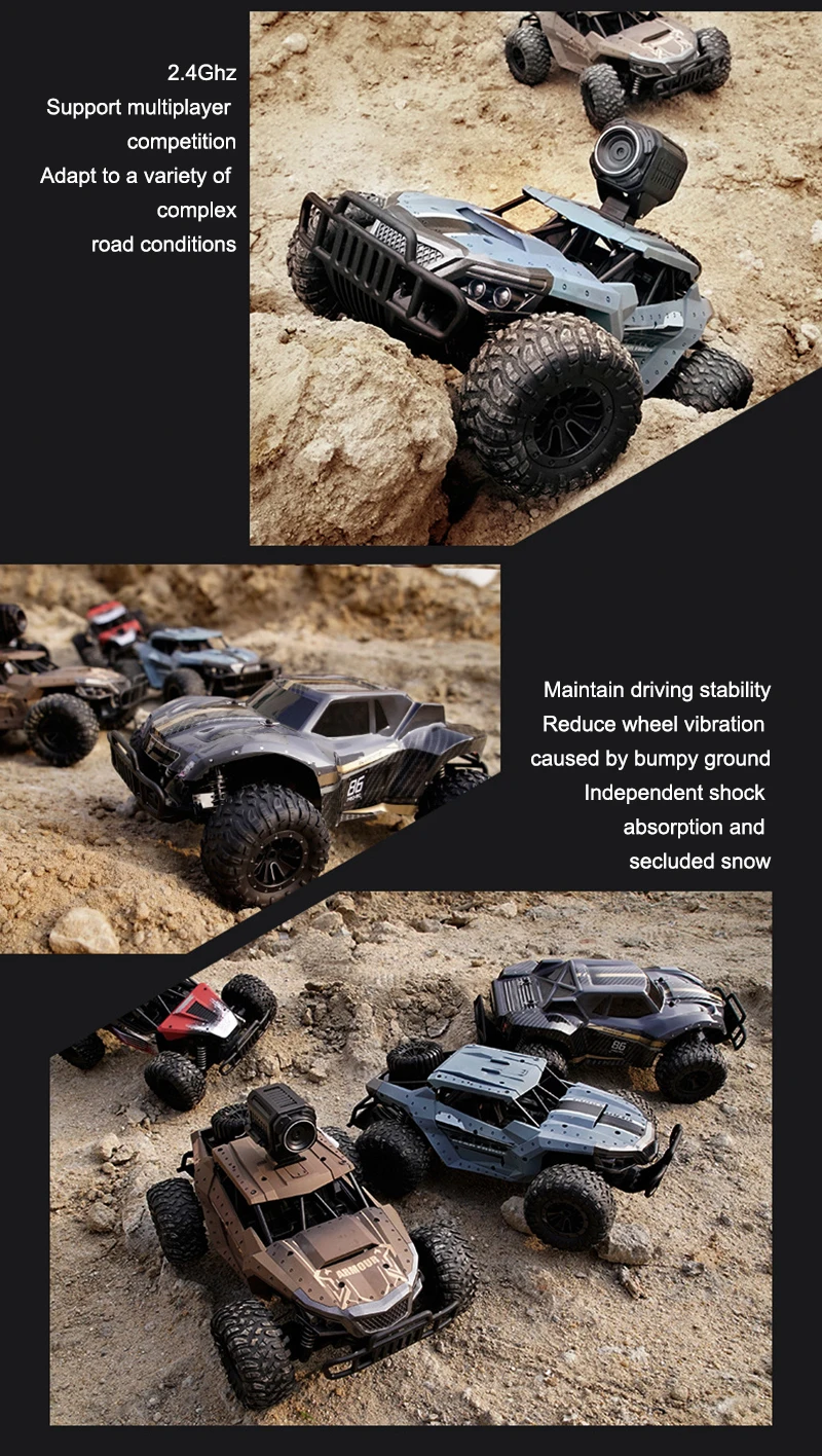 Радиоуправляемый автомобиль 4WD 2,4 ГГц с дистанционным управлением, автомобиль для скалолазания с камерой 720P HD FPV 1/16 внедорожник 4x4 грузовик для детей, игрушки для мальчиков