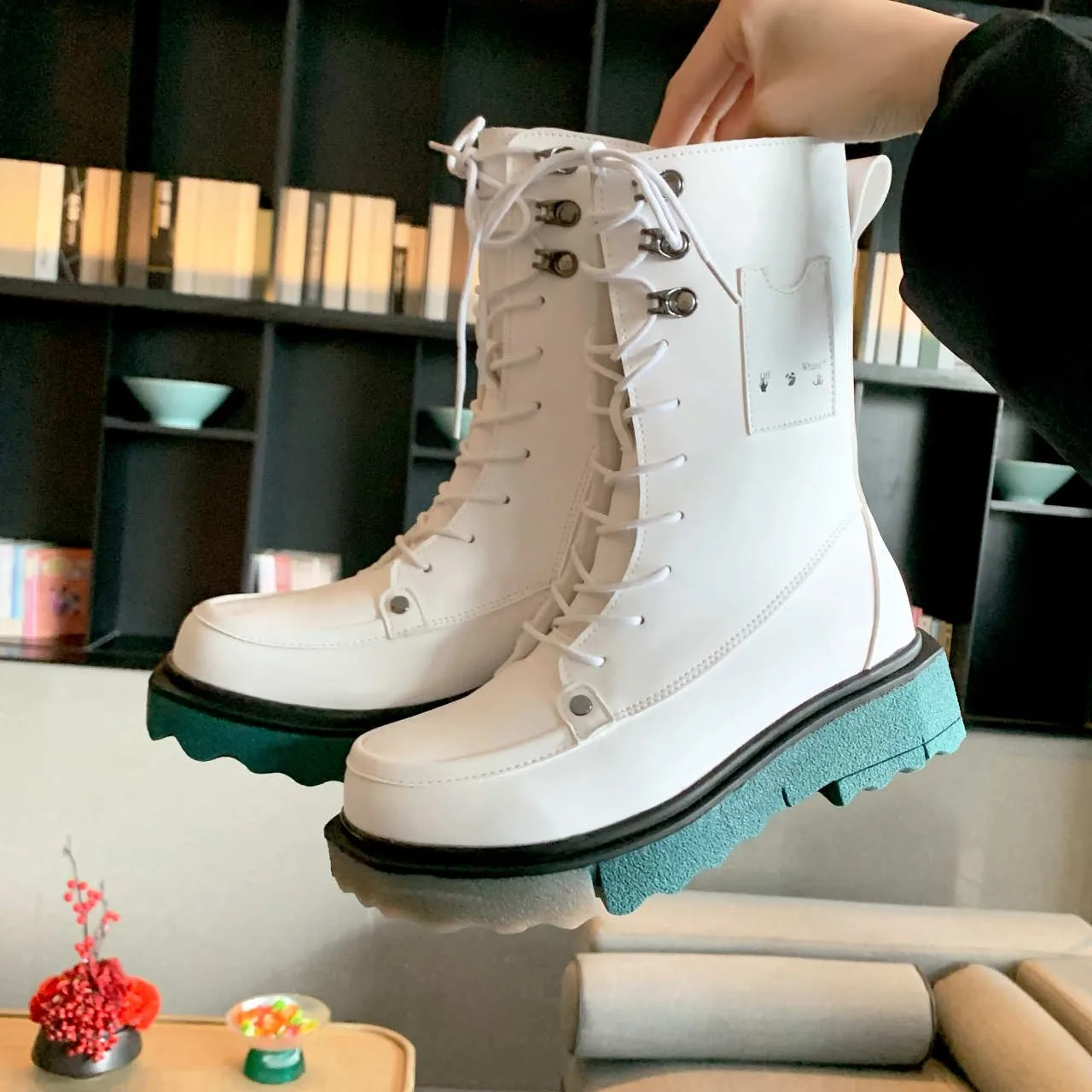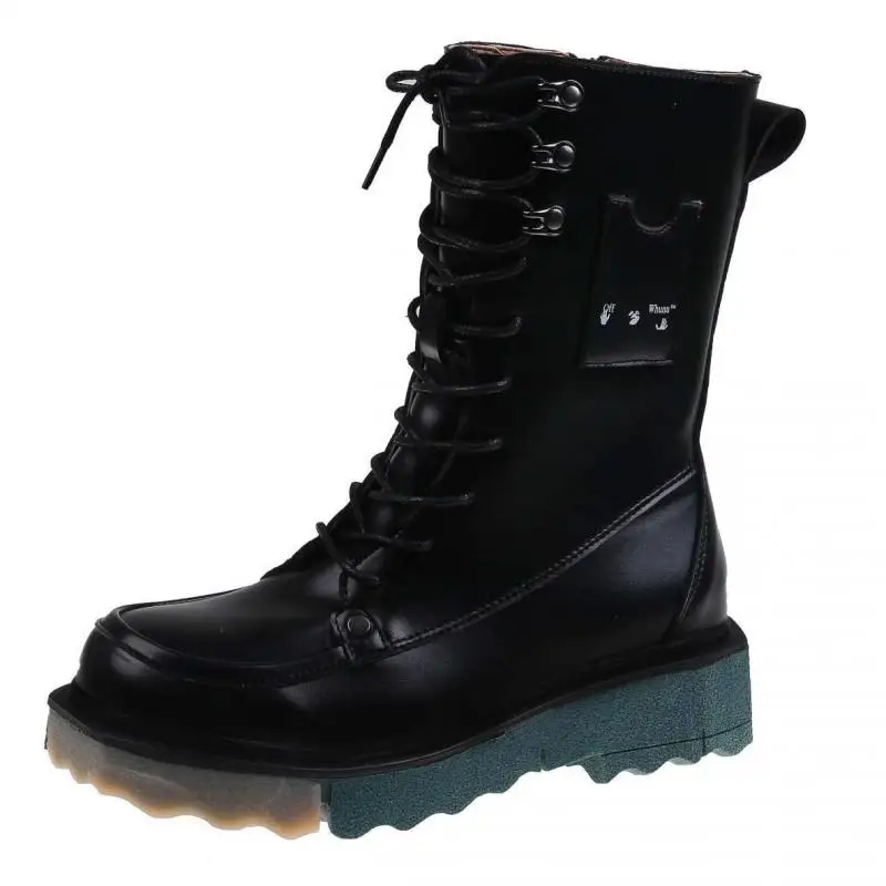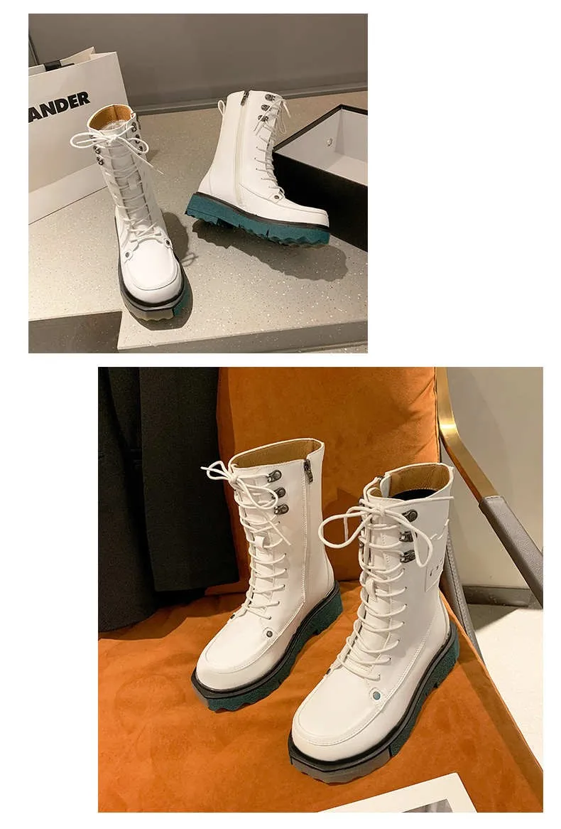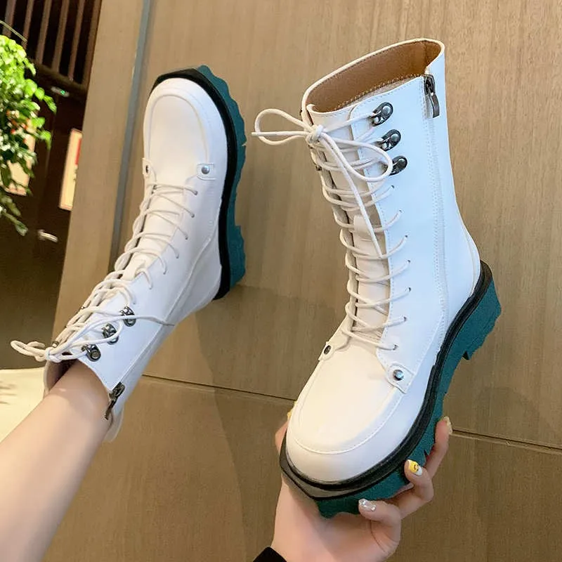 Осенние эластичные ботильоны на платформе женские ботинки смешанных цветов с круглым носком средней длины женские ботинки из искусственной кожи на шнуровке