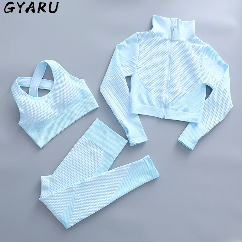 Бесшовный Женский комплект для йоги GYARU, спортивная одежда для тренировок, одежда для тренажерного зала, укороченный топ с длинным рукавом, леггинсы с высокой талией, спортивные костюмы