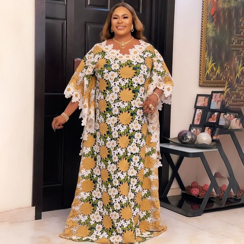 Кружевные африканские платья для женщин большого размера Boubou 2021 Новая африканская одежда Дашики длинное Африканское платье женские свадебные платья