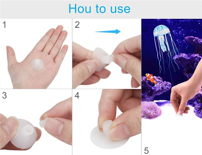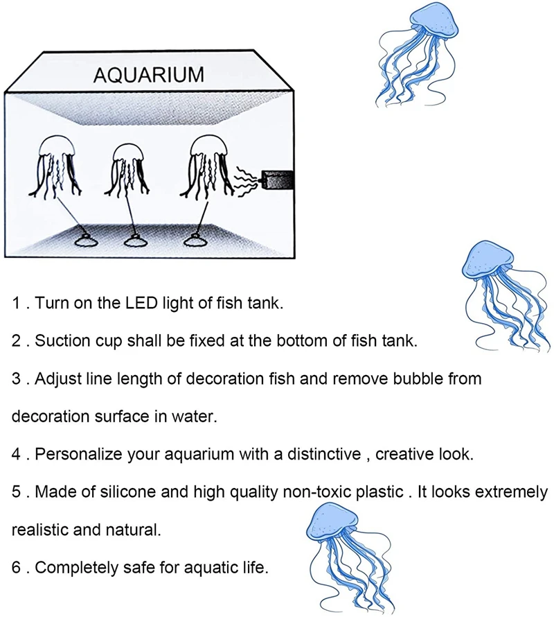 Идеальное Украшение: плавающая свободно и изящная невероятно детализированная имитация плавающая Медуза.Безвредный для вашей рыбы: Изготовлен из экологически чистого силикона, нетоксичный, без запаха и долговечный.Легко сделать его живым: просто Зафиксируйте присоске, она крепится тонкой невидимой линией.Не «светится в темноте»: светящийся эффект будет происходить только под actinic светильник ing, рекомендуется синий или фиолетовый светильник.6 видов цветов: 6 искусственных медуз синего, фиолетового, зеленого, оранжевого, розового и желтого цвета.