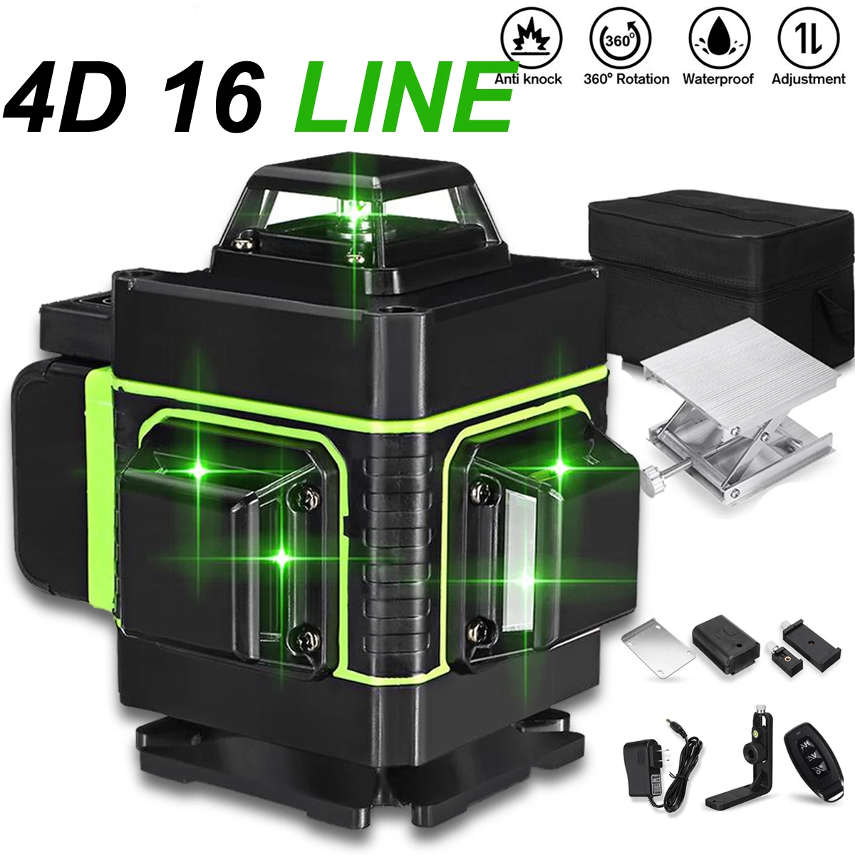 16-линейный зеленый лазерный уровень 4D, 360 Горизонтальные и вертикальные перекрестные линии с автоматическим самовыравниванием, супермощный для помещений и улицы