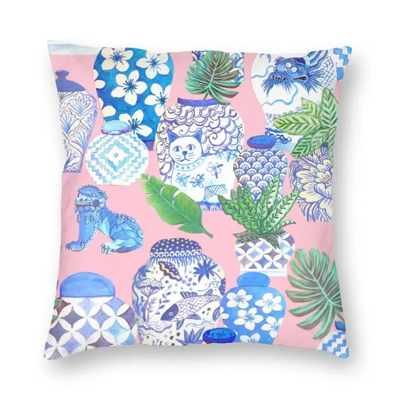 Розовая китайская ботаническая наволочка для подушки, Роскошная искусственная наволочка, наволочка для автомобиля, дивана, украшение для дома