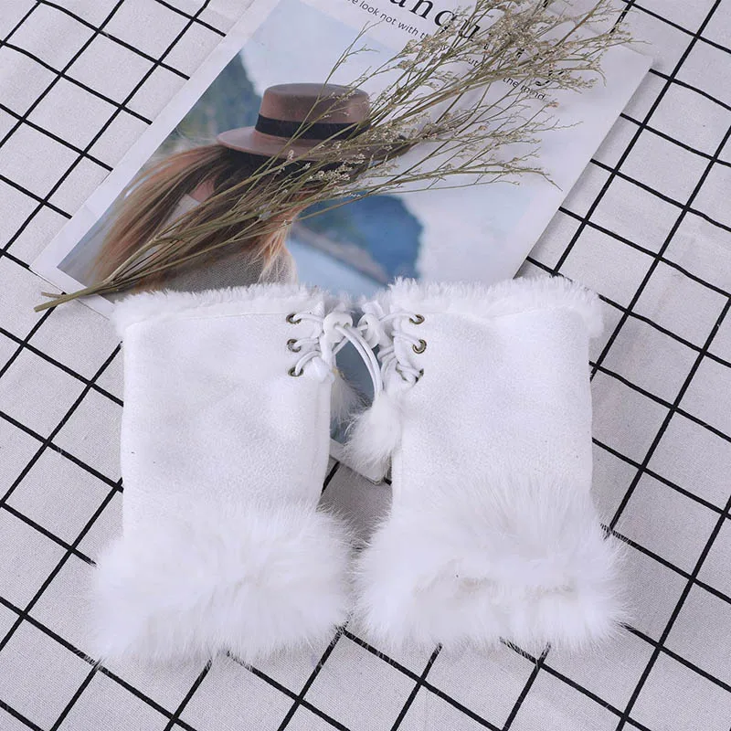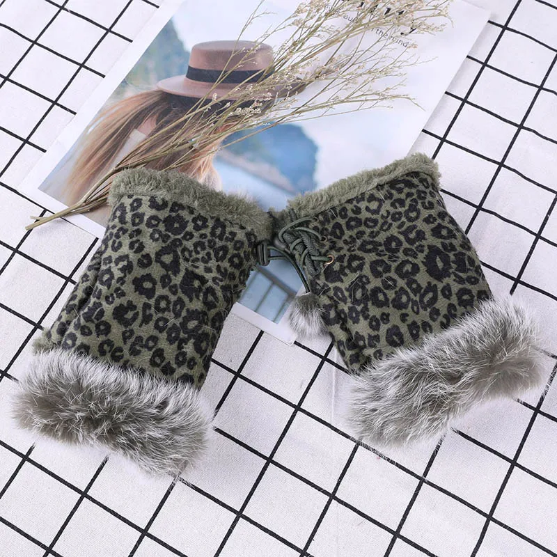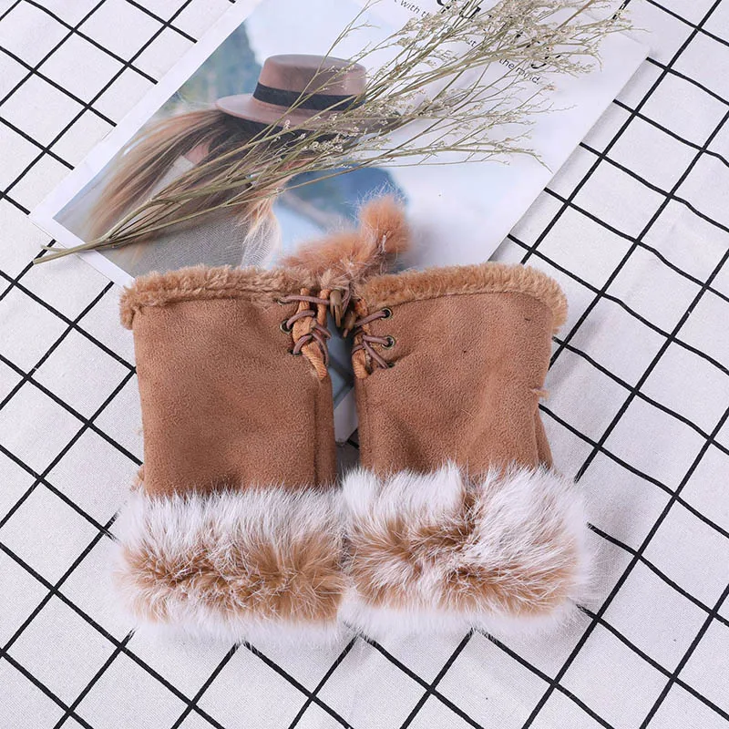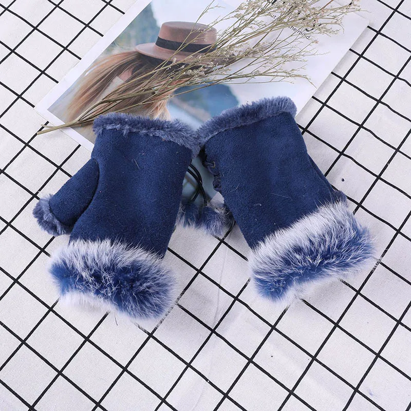Перчатки женские зимние из искусственного кроличьего меха, бархатные, толстые, с полупальцами, для вождения, для спорта, езды на велосипеде, замши, кожи, плюша, холодные теплые, R19