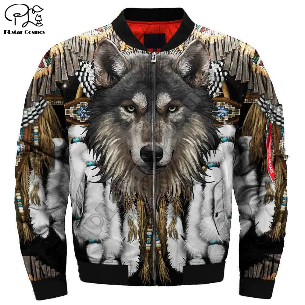 Мужская куртка-бомбер с объемным рисунком волка, куртка-бомбер в стиле Триппи с индейским принтом, Повседневная Уличная одежда в стиле Харадзюку для осени и зимы