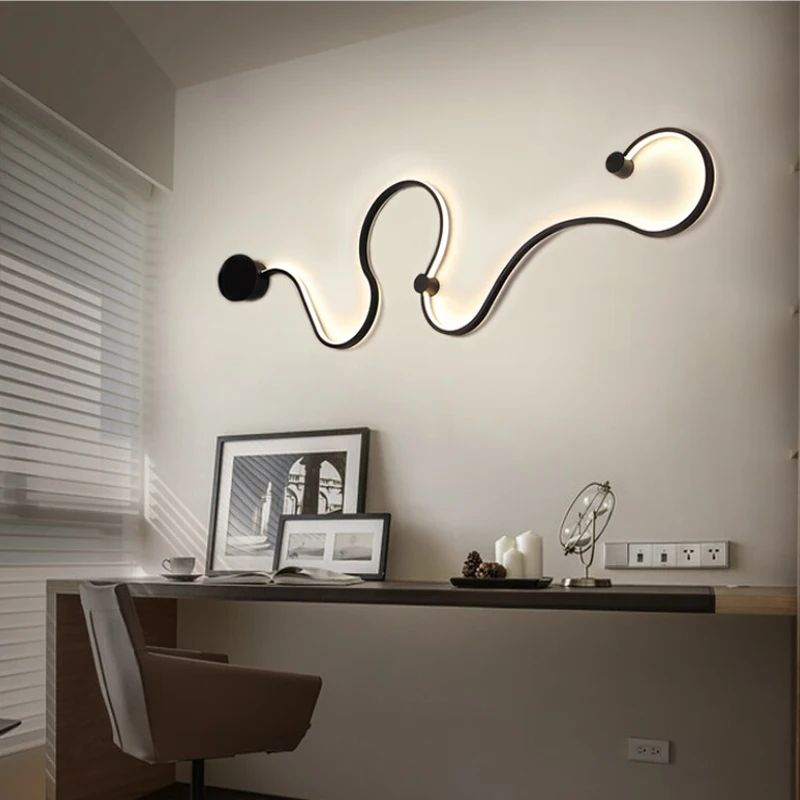Современная алюминиевая настенная лампа, минималистичный S-образный...