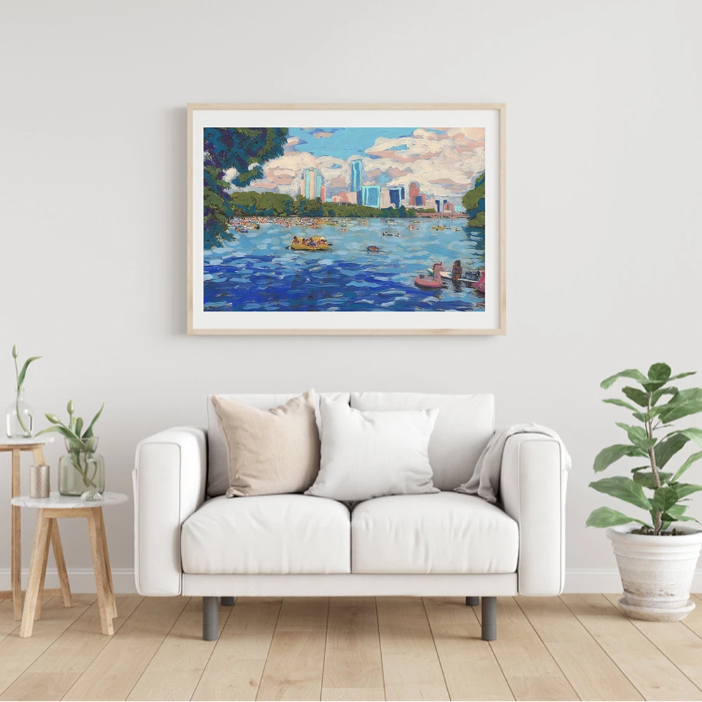 Художественный постер Остин, Техасский пейзаж, картина с принтом Бартона и пружин, Техасский пейзаж стена Арт Деко, туристические принты, городская достопримечательность