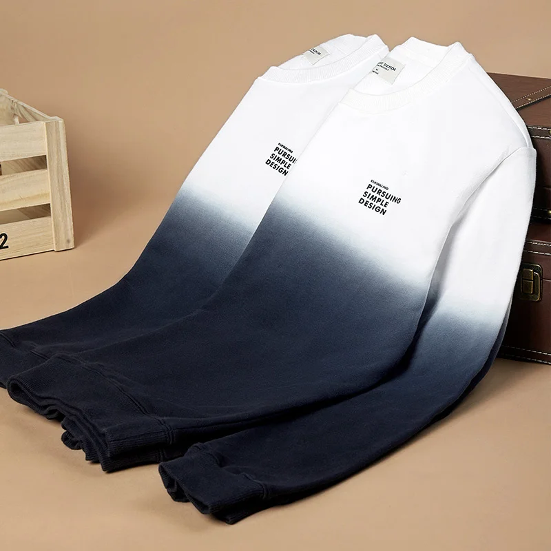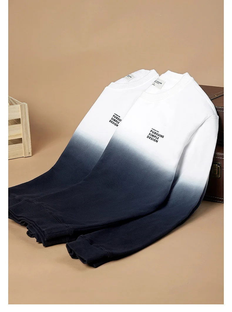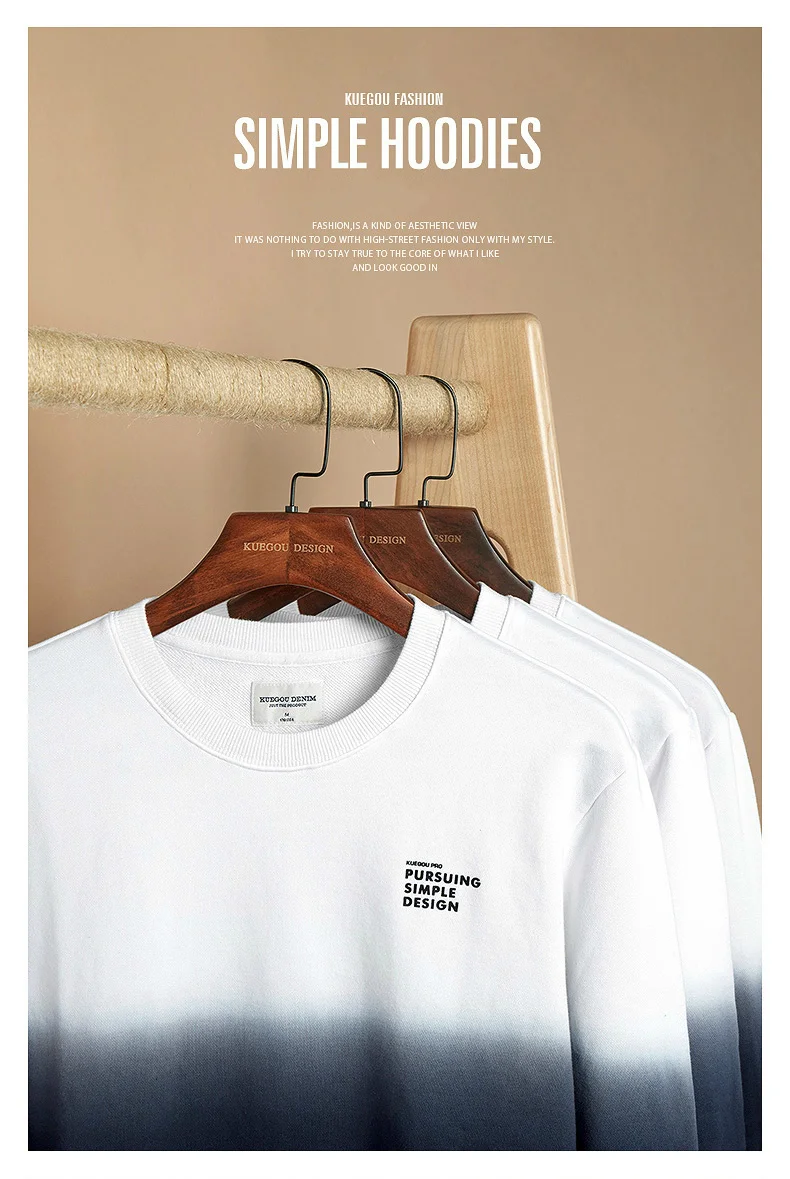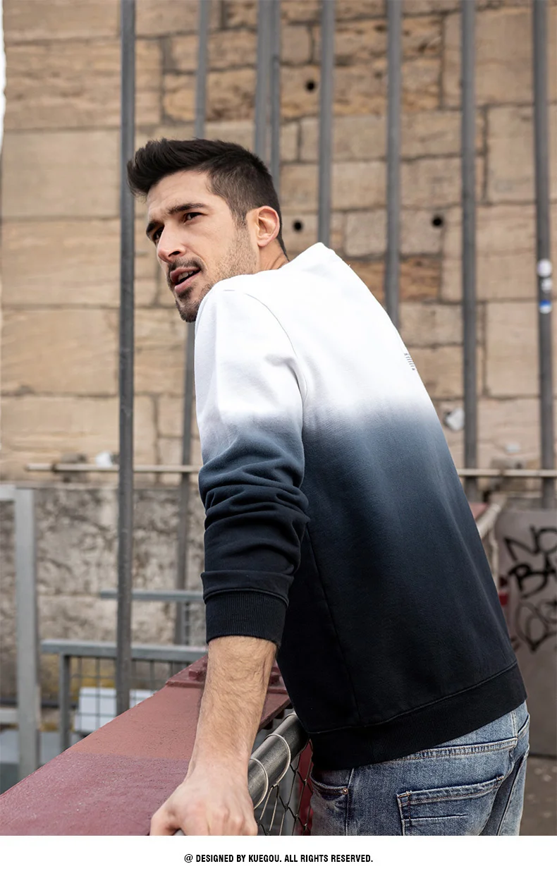 KUEGOU 2022 Весна 100% хлопок градиент печати толстовка мужская Crewneck тонкая Мода для мужчин Уличная одежда размера плюс 9514