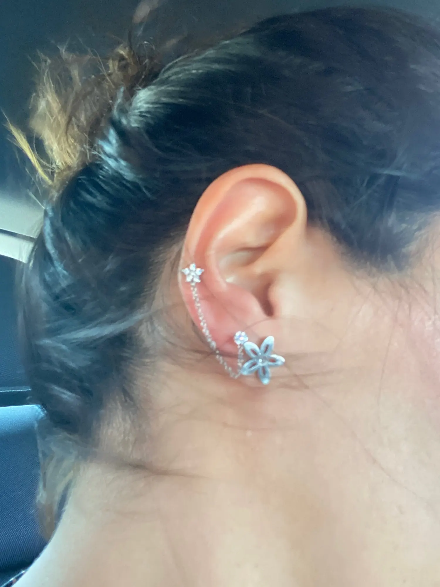Они мне не понравились. Очень большой цветок и циркония на другой стороне цепи тоже. Они похожи на игрушки.