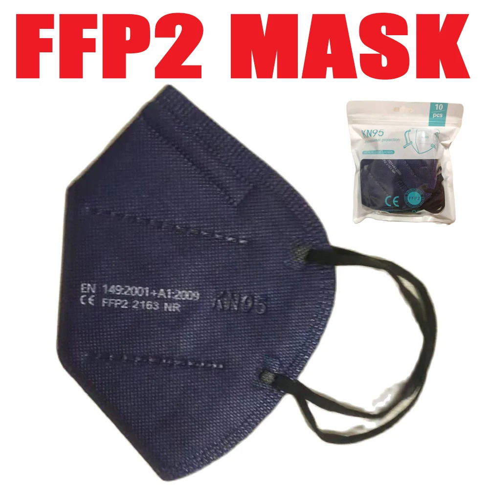 FFP2 маски CE KN95 маски со ртом для взрослых ffp2mask 5-слойная защитная маска fpp2 маска от пыли темно-синий респиратор
