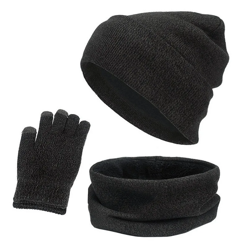 Новый Зимний женский шарф шапка Сенсорный экран перчатки набор бархатный мужской головной убор женские шапочки наборы плюшевые мужские шапки шарф