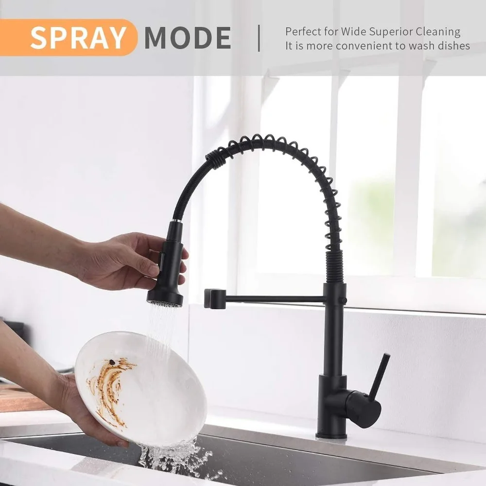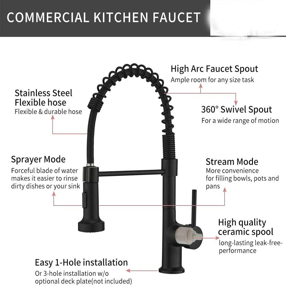 Вращающийся на 360 градусов смеситель для кухни черный пружинный вытяжной смеситель для раковины Смеситель для горячей и холодной воды