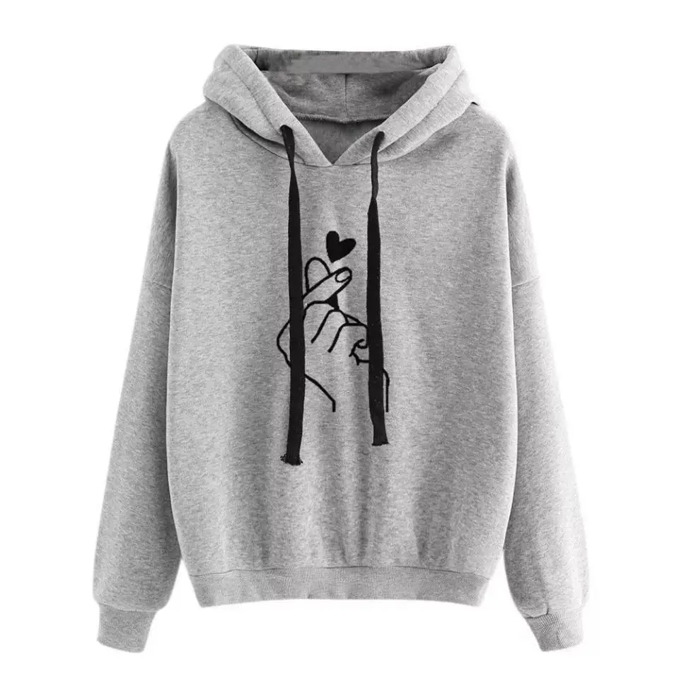 Женская толстовка с капюшоном, топы, Kpop, Finger Heart Love, с рис...
