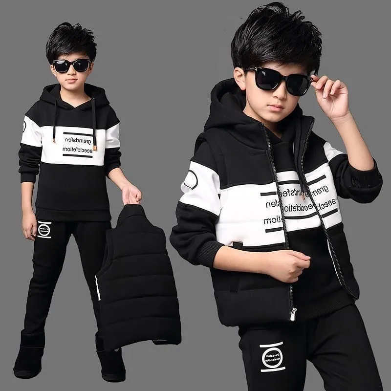 Спортивный костюм для мальчиков и девочек, из 3 предметов, рубашка с длинным рукавом, штаны, жилет, теплая спортивная одежда, От 2 до 12 лет
