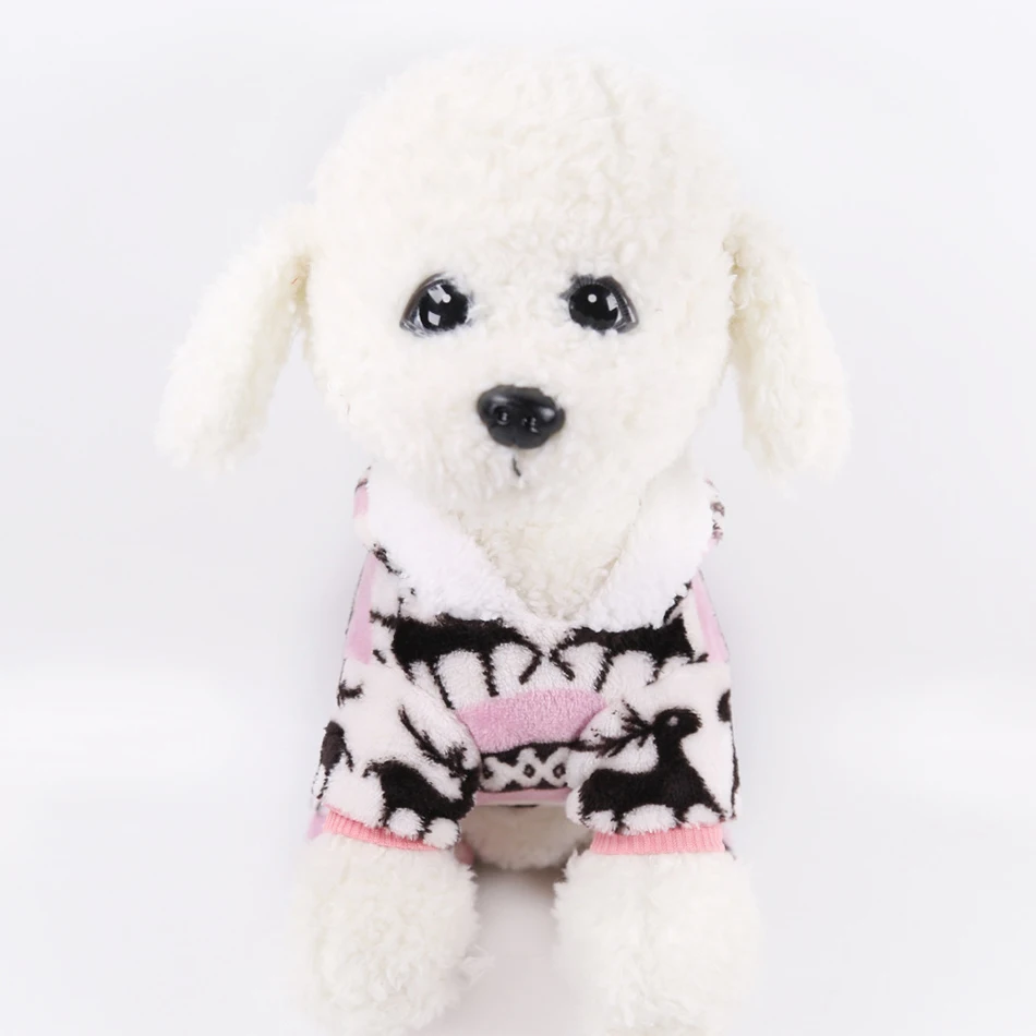 Одежда для домашних животных с четырьмя ногами, Рождественская Толстовка с рисунком Санты, одежда с оленем, зимнее теплое платье для собак, плюшевых Мопсов, кораллового флиса