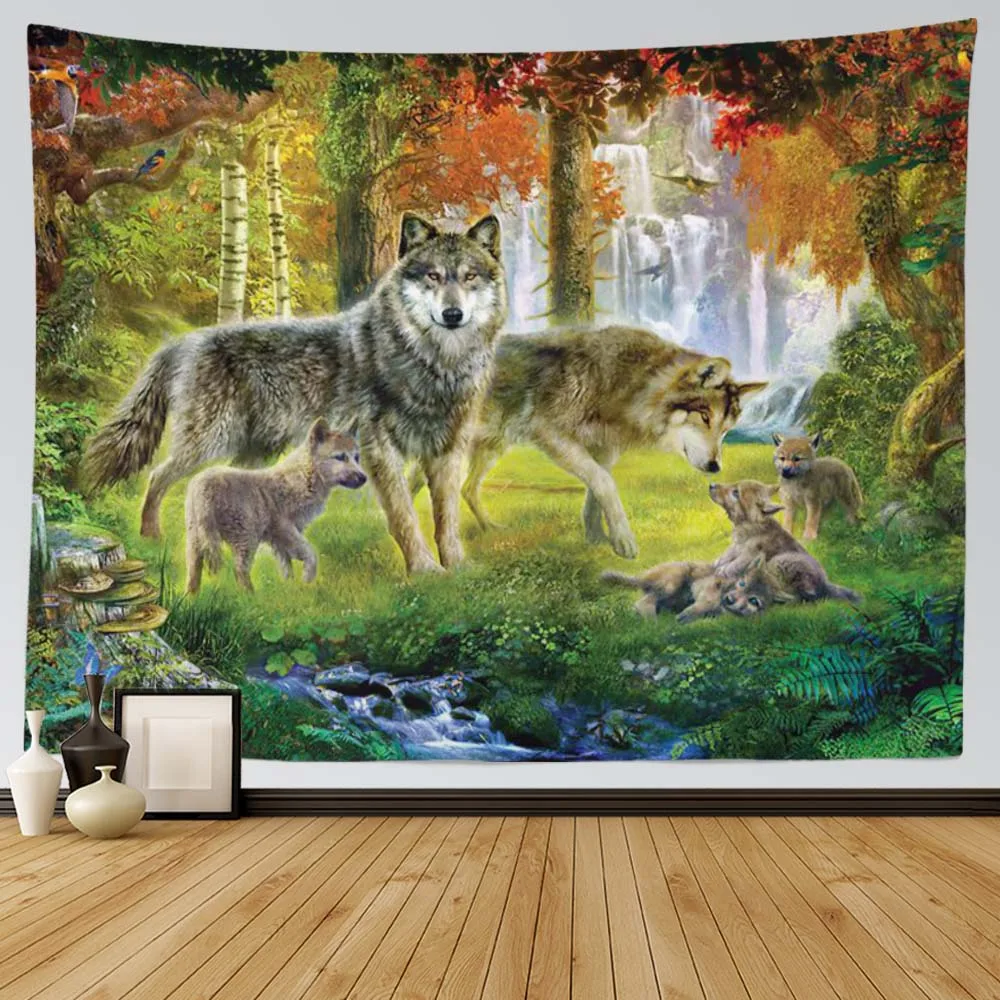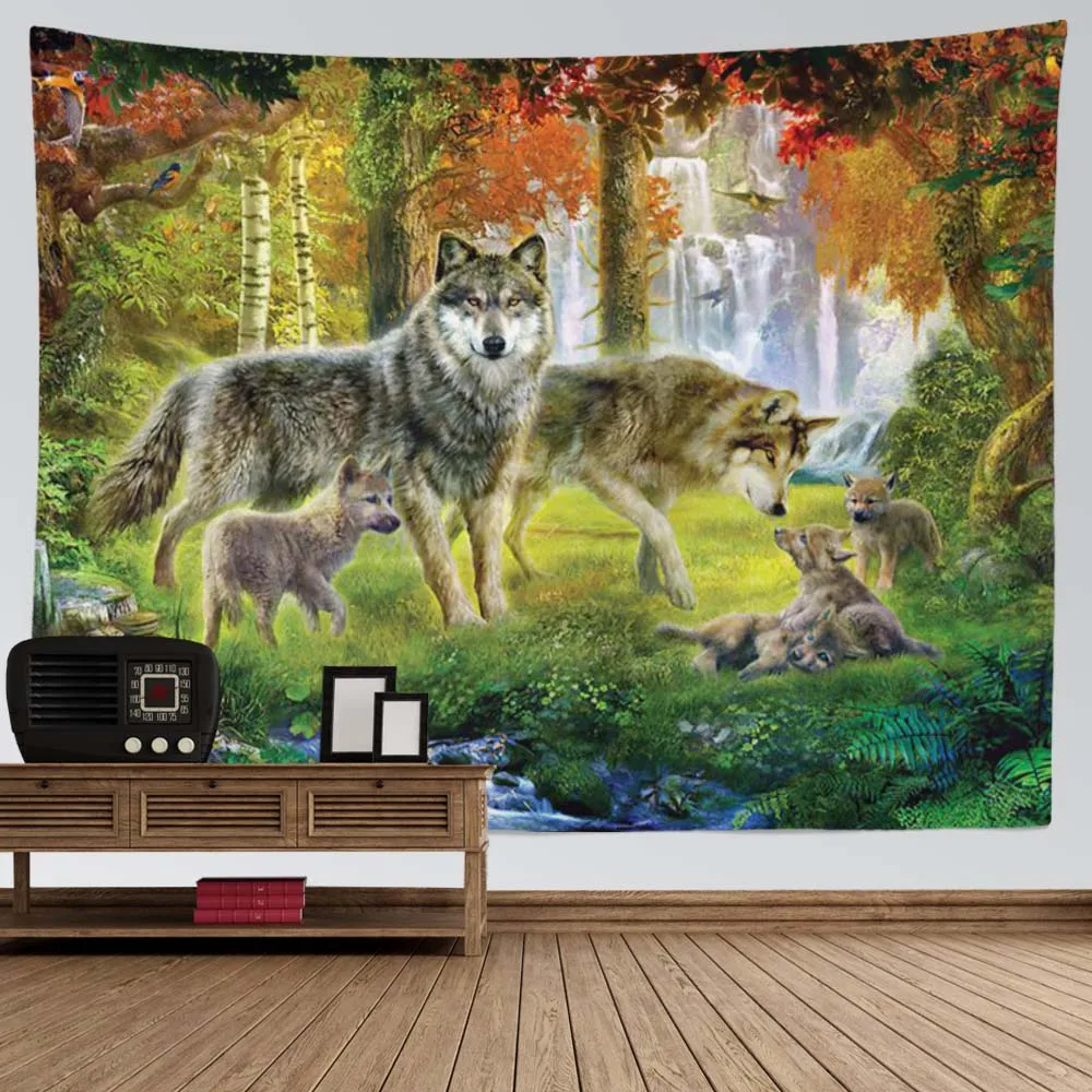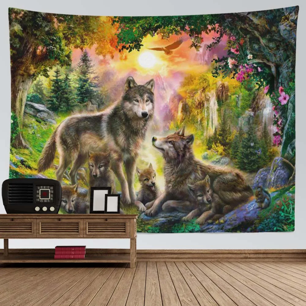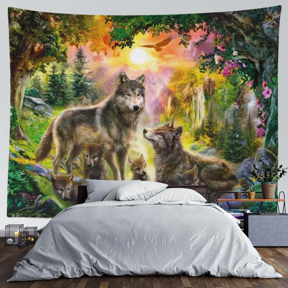 Настенный Гобелен SepYue в стиле хиппи для спальни, украшение для дома, настенное покрывало, настенные ковры, животные, волк, Аврора, звездное небо