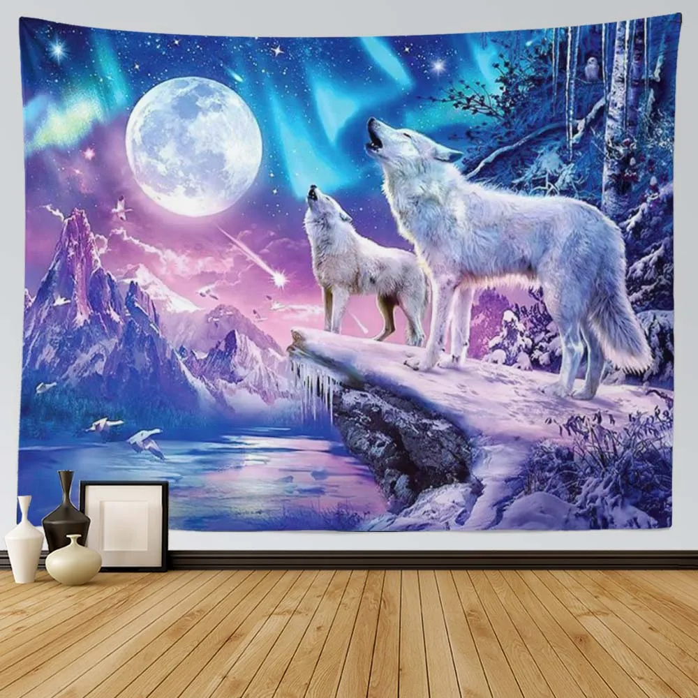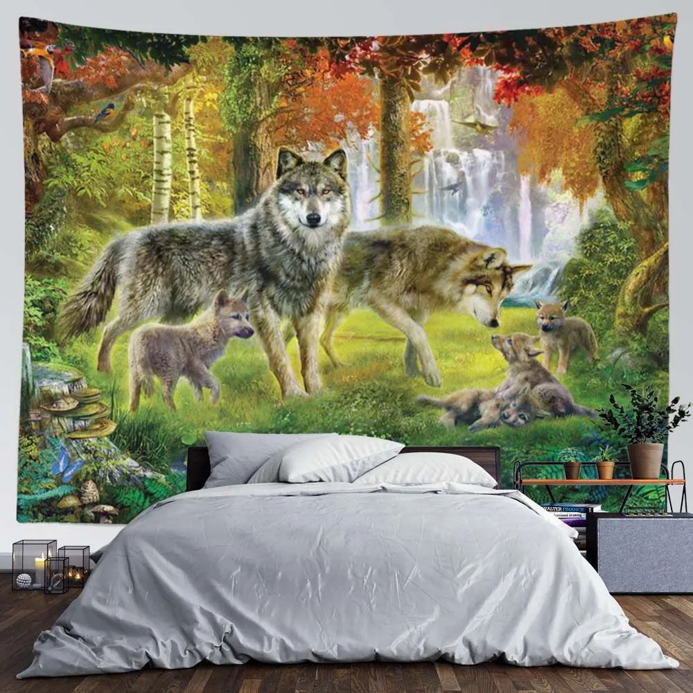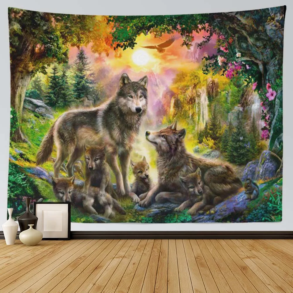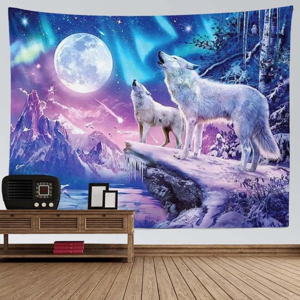 Настенный Гобелен SepYue в стиле хиппи для спальни, украшение для дома, настенное покрывало, настенные ковры, животные, волк, Аврора, звездное небо