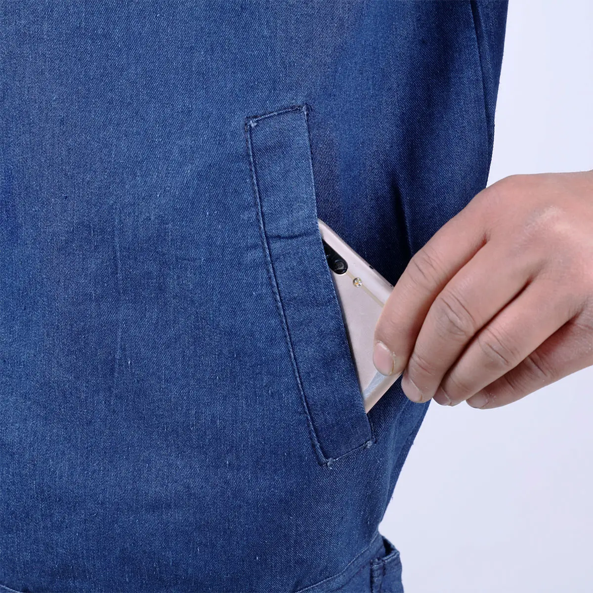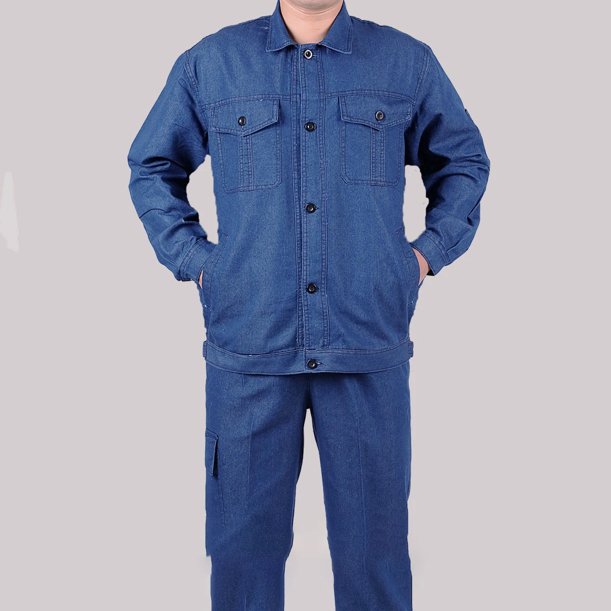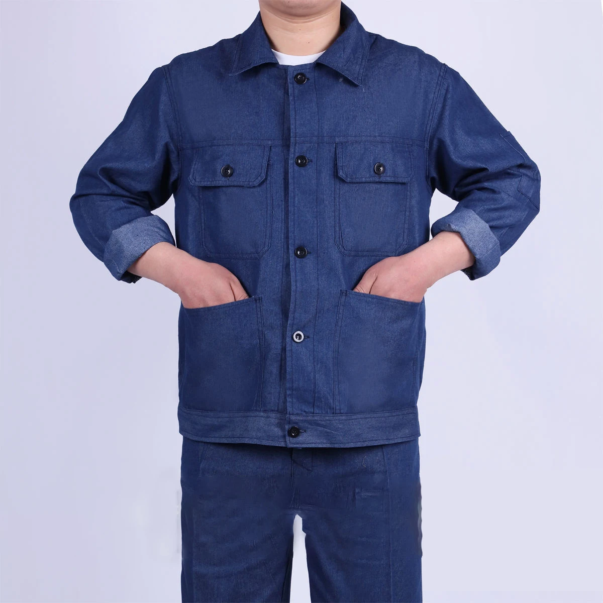 Летний Тонкий джинсовый костюм, рабочая одежда для мужчин и женщин, куртка и штаны, износостойкая дышащая впитывающая пот Рабочая одежда