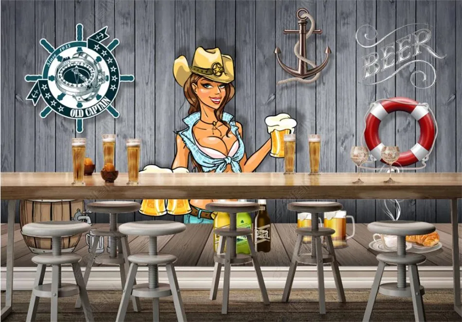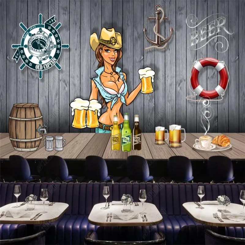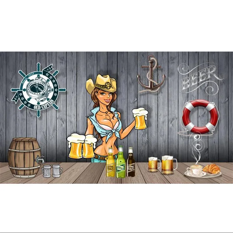 Настенная бумага на заказ с ручной росписью пива, бар, KTV, рестора...