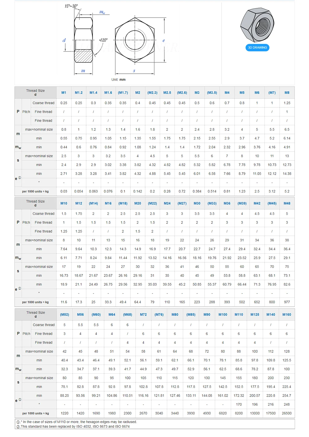 Шестигранные гайки из нержавеющей стали SUS304, Метрическая грубая ...