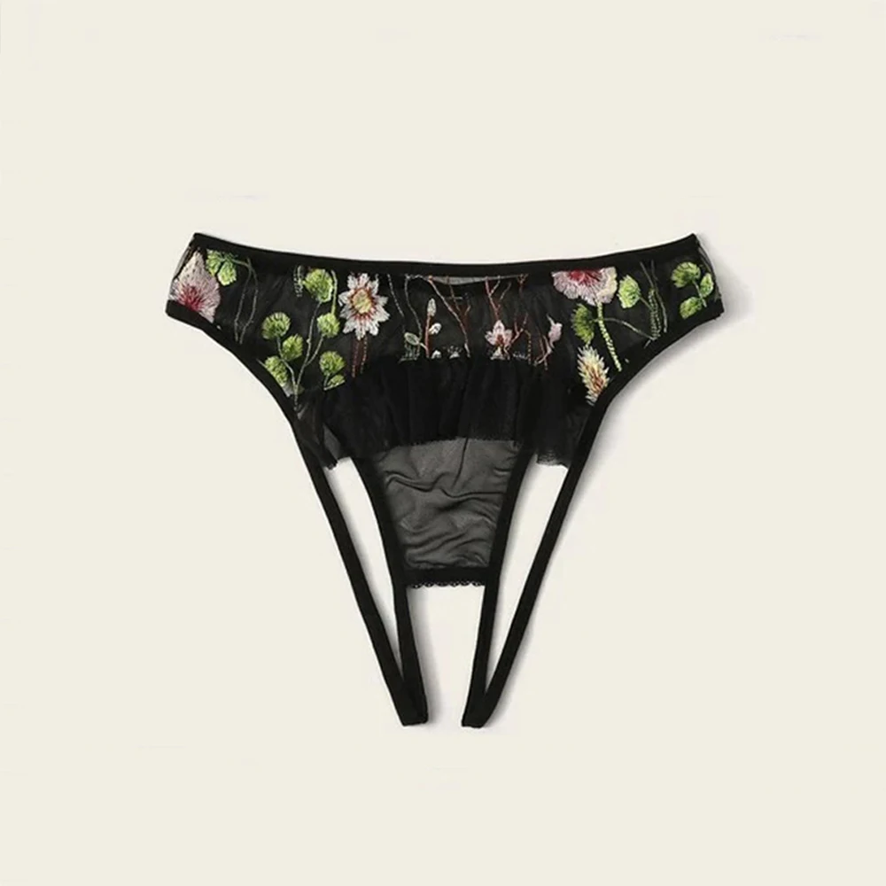 Весенне-летнее тонкое сексуальное женское нижнее белье с принтом, открытой пилкой, трехсекционное сексуальное нижнее белье, костюм с сексуальной вышивкой