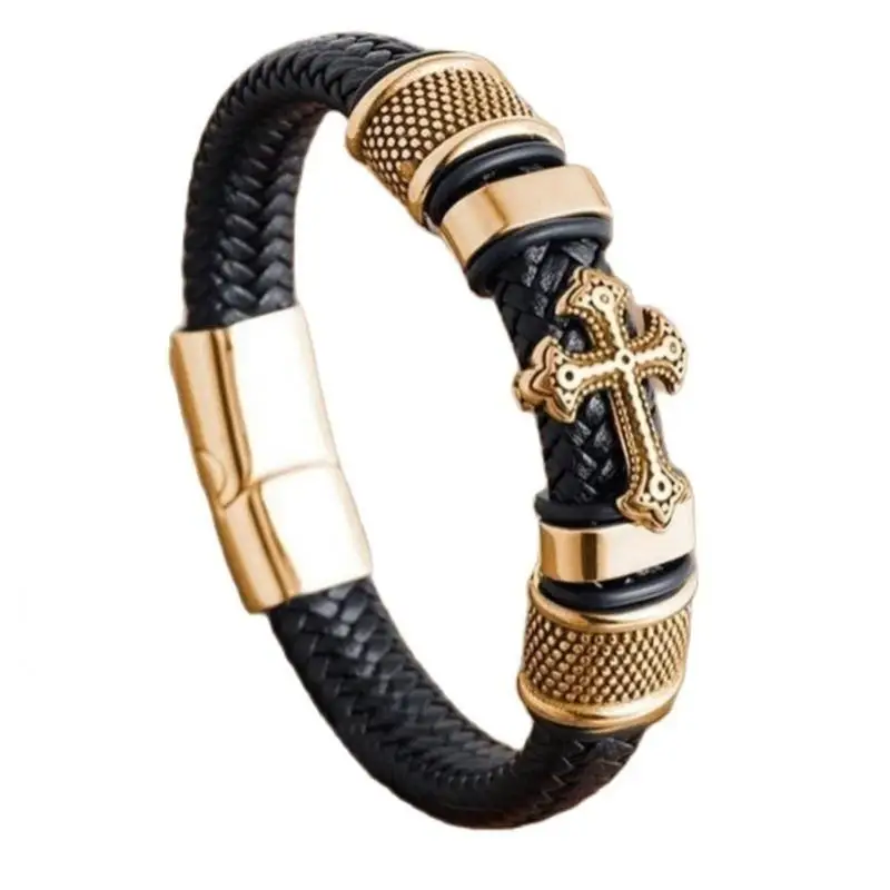 Браслет мужской с магнитной застежкой, Шарм ручной работы, плетеный крестом, Классическая винтажная бижутерия в подарок