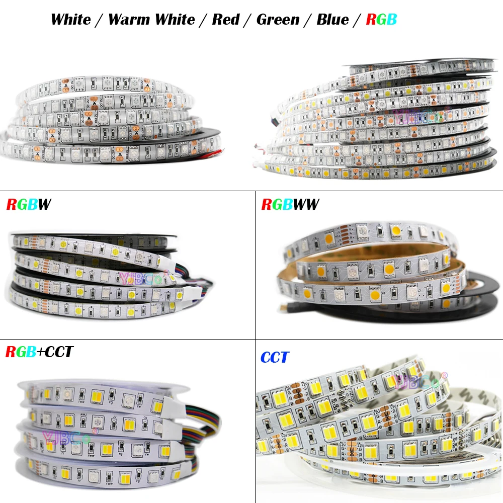 Гибкая СВЕТОДИОДНАЯ лента SMD 120, 12 В, 24 В, 5 м, 5050 светодиодный sM CCTбелыйтеплый белыйкрасныйзеленыйсинийRGBRGBWRGBWWRGB + CCT лента