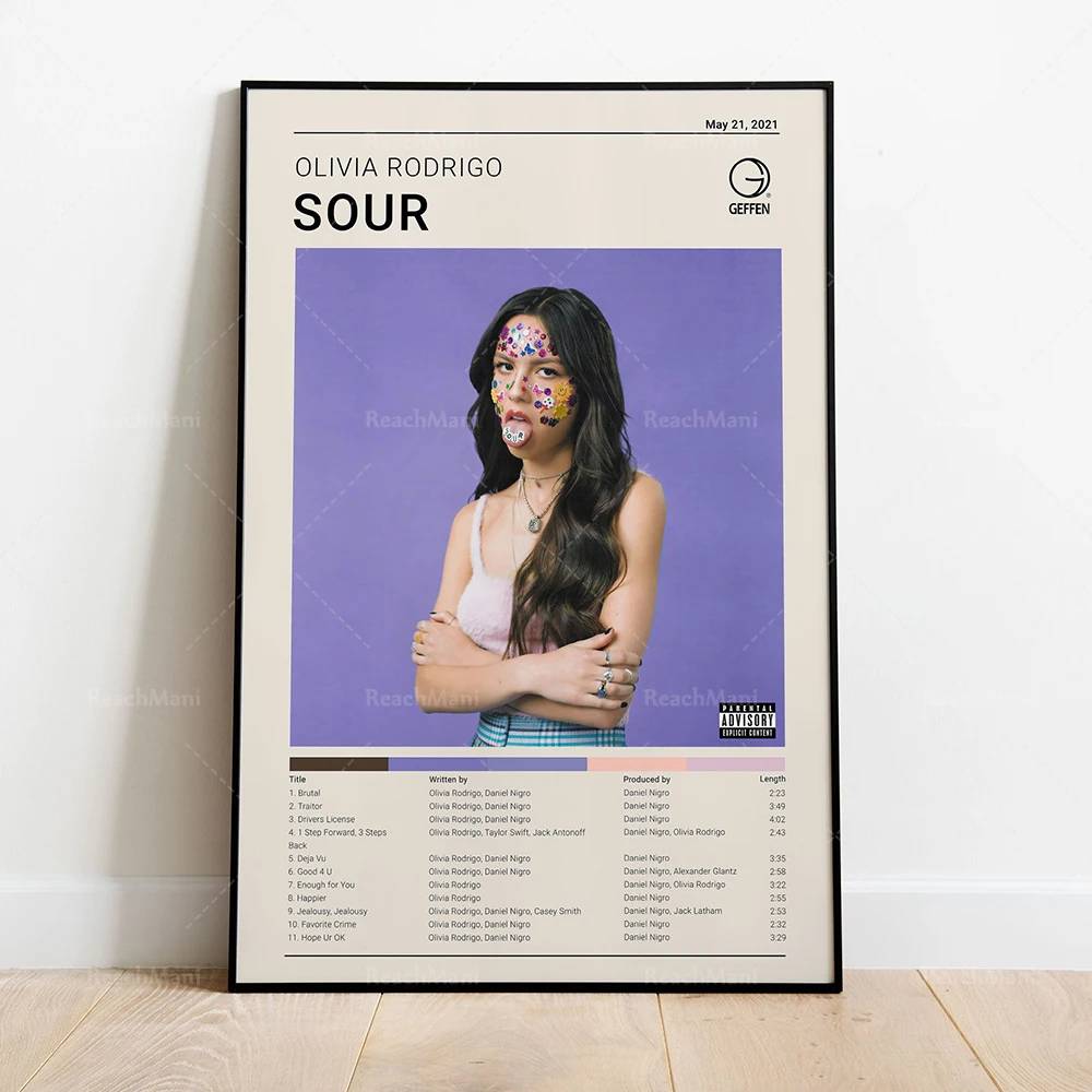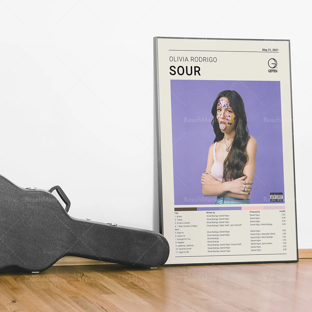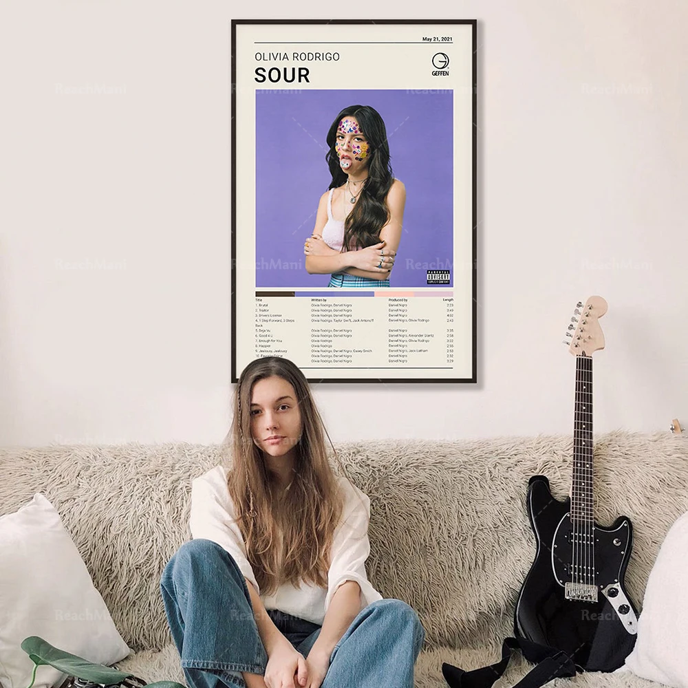 Постер с Оливией Родриго Принт с Оливией Родриго Постер с изображением кислого альбома Настенное искусство Декор комнаты, настенный постер