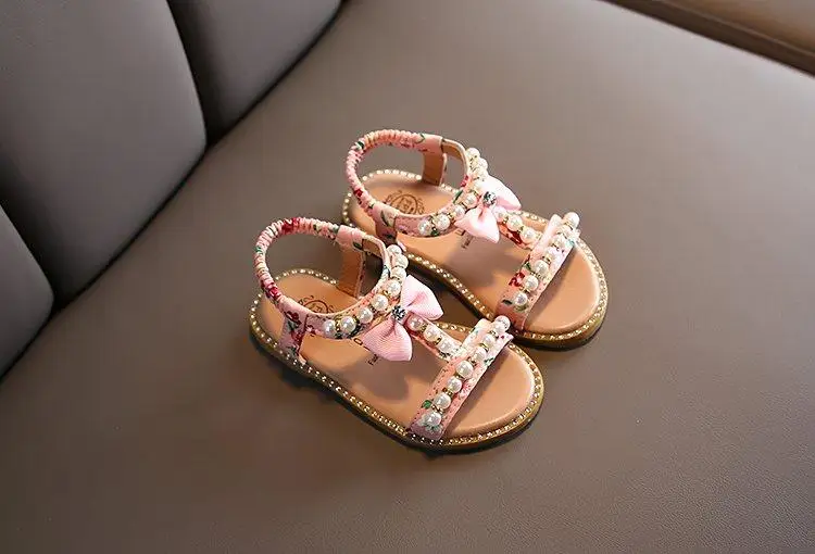 Сандалии для девочек, новинка 2021, летняя модная обувь принцессы с бантом, детская пляжная обувь с открытым носком и жемчугом, сандалии для маленьких девочек, сандалии для малышей
