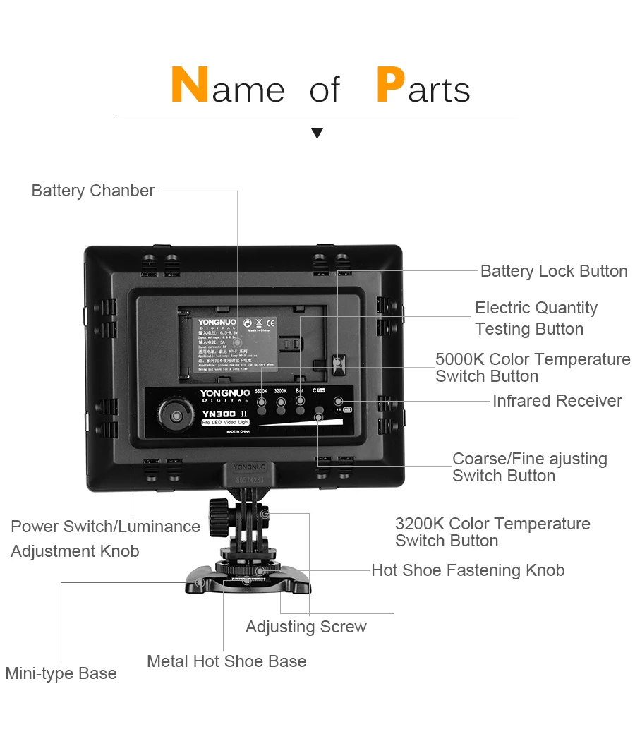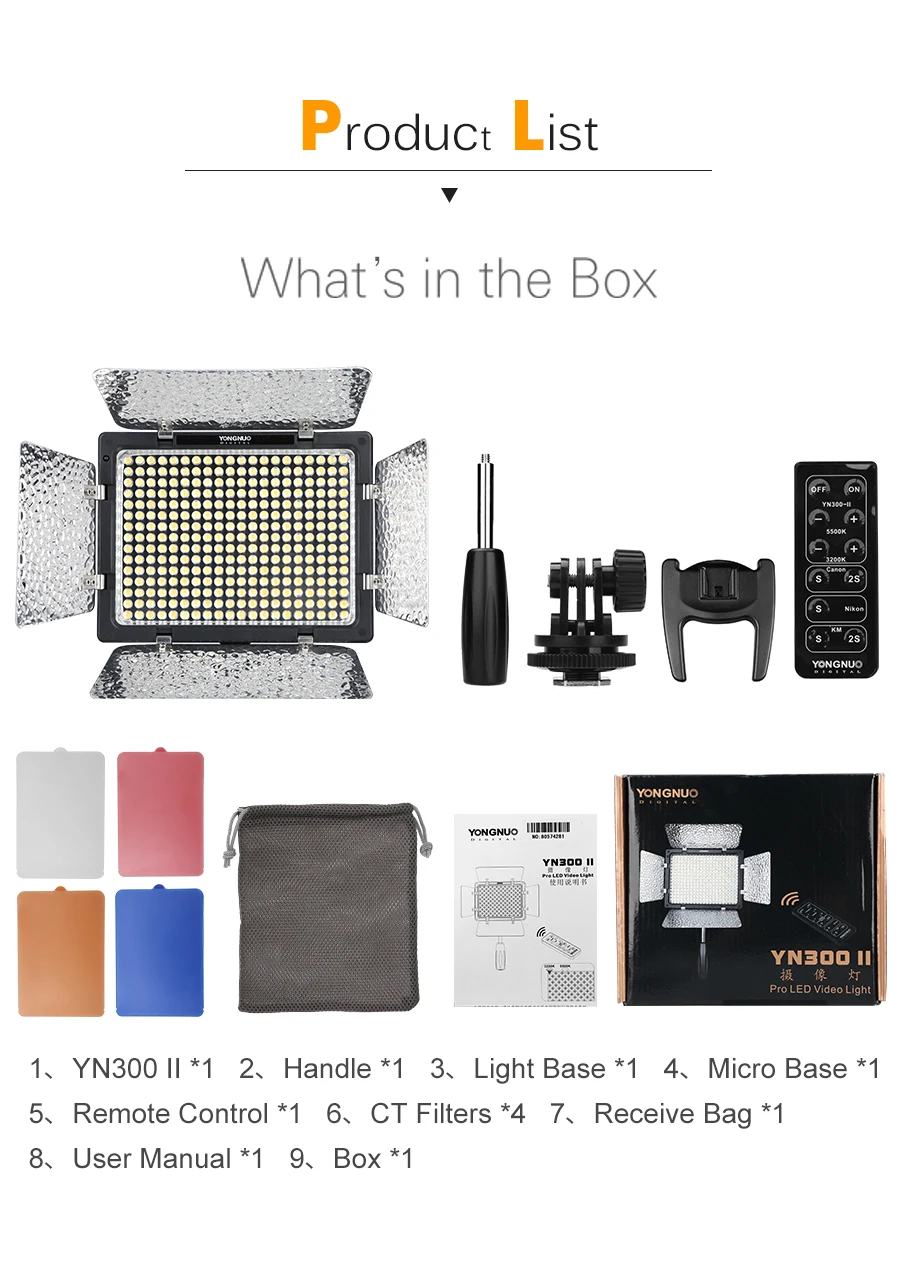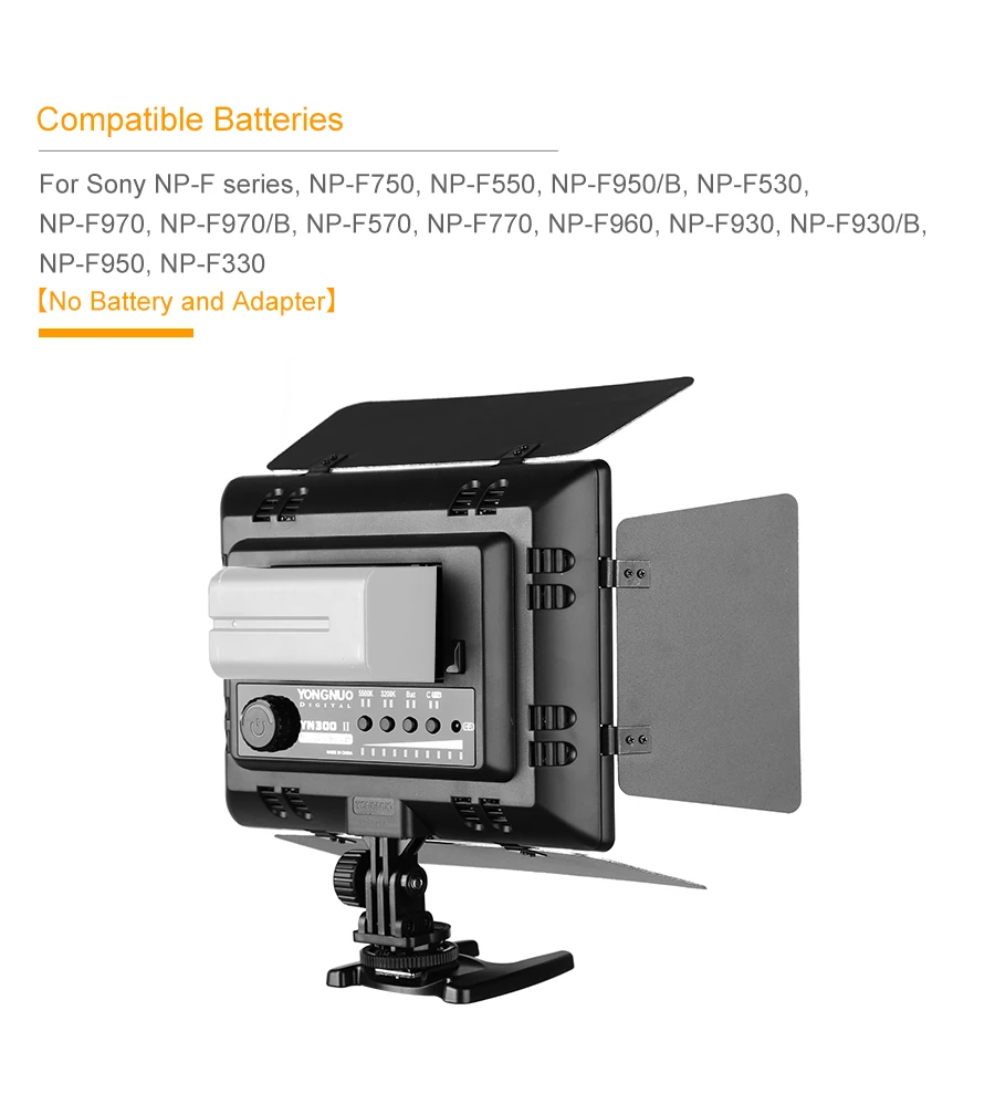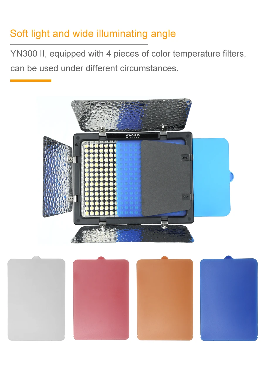 Цветовая температура YN300-II может быть скорректирована с 3200-5500k, что удовлетворит ваши потребности в большем количестве ситуаций съемки.